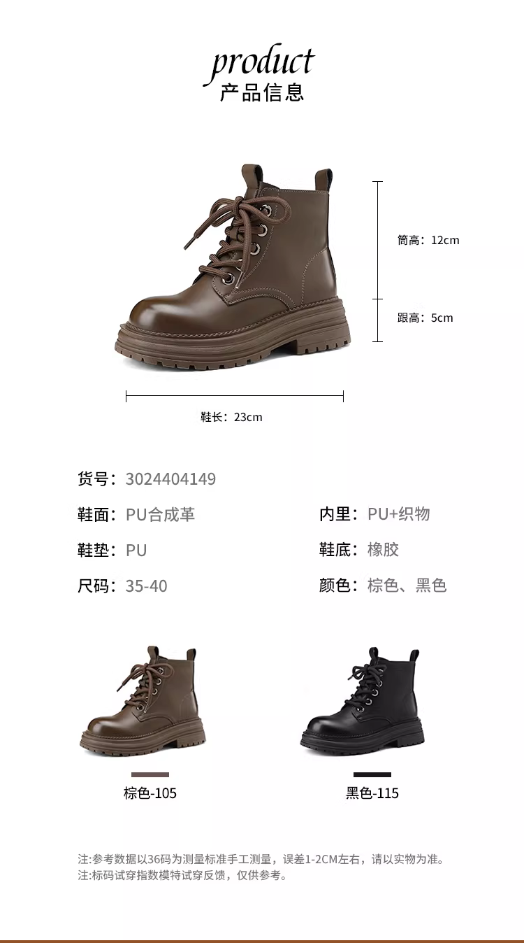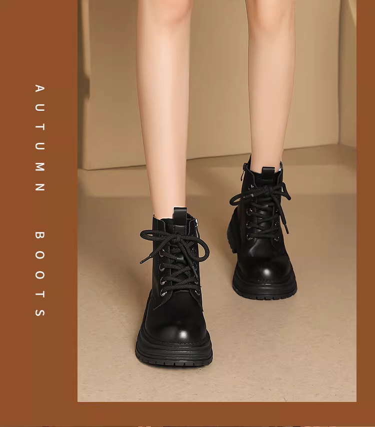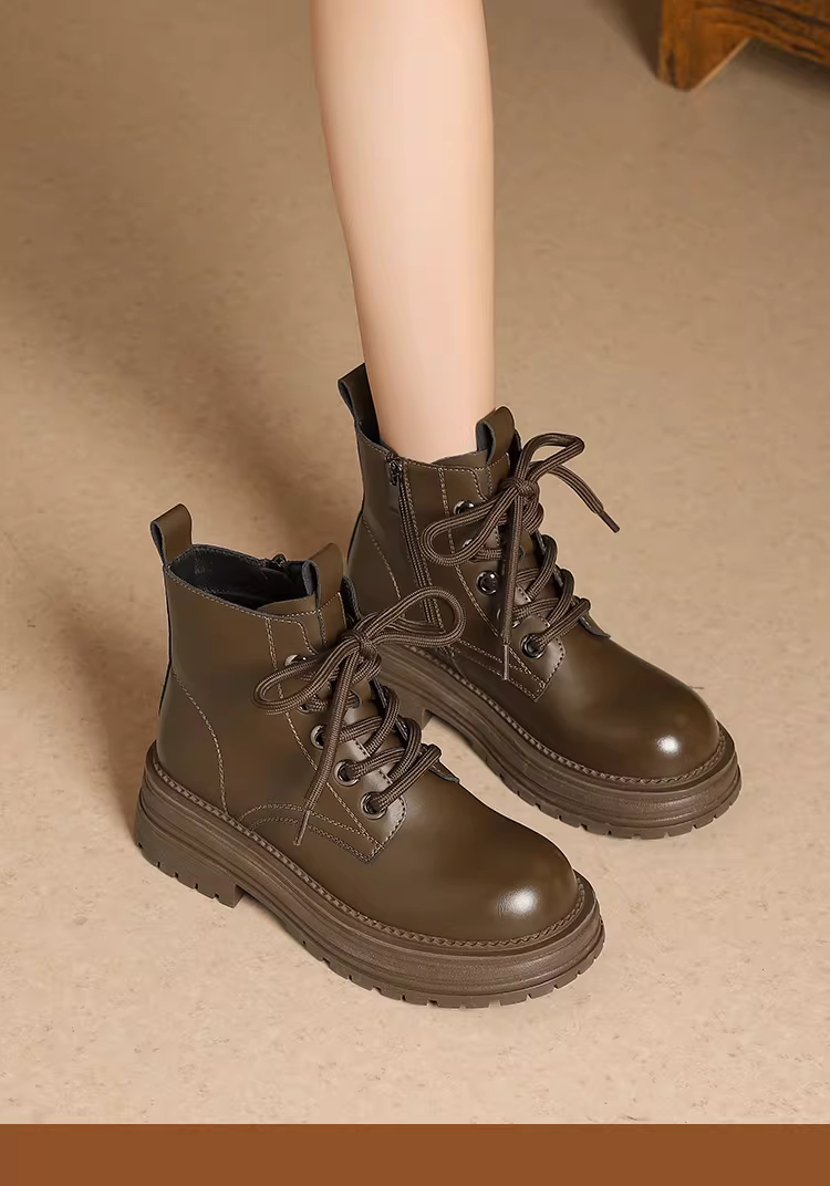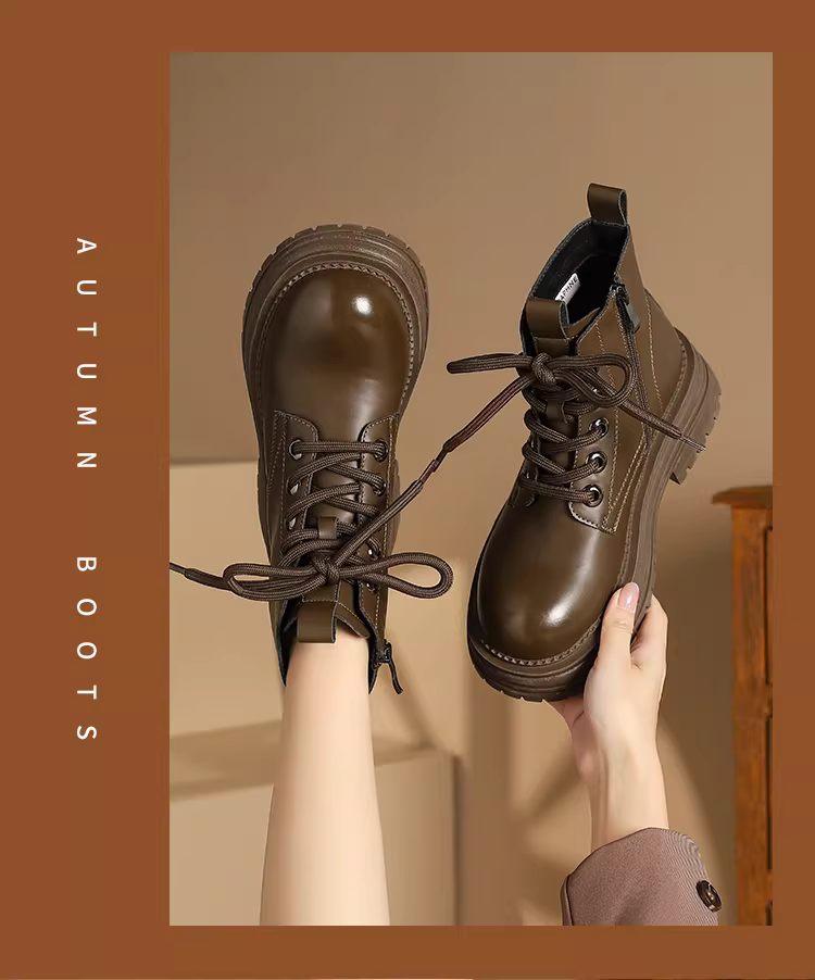- Giày bốt Martin đế dày Daphne dành cho nữ 2025, giày bốt nữ mùa thu đông màu nâu đa năng, kiểu dáng Anh, bốt ngắn đi xe máy