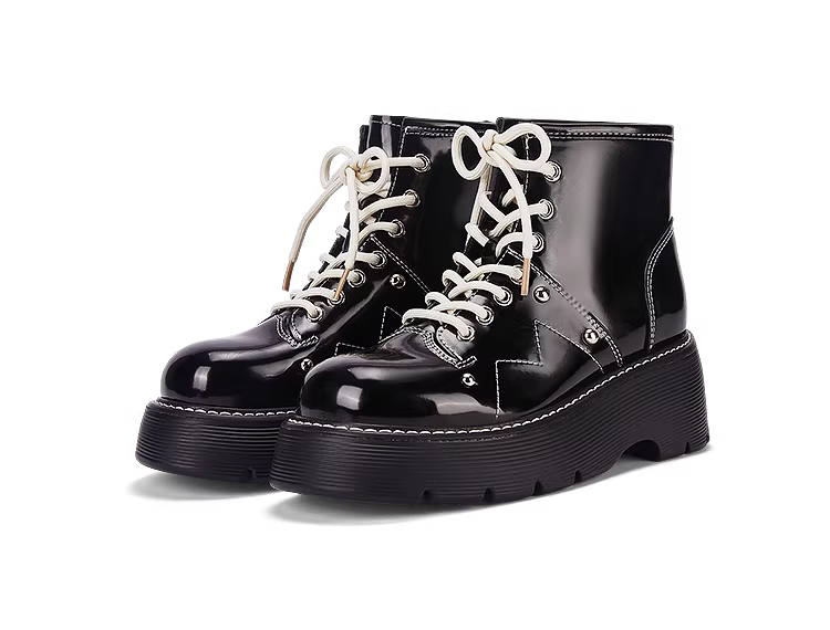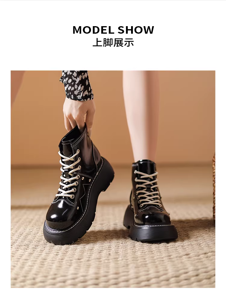 - Giày bốt Martin đế dày Daphne dành cho nữ 2025, kiểu Anh, chất liệu da bóng đen, kiểu ngắn, mùa xuân thu, giày bốt đơn nữ