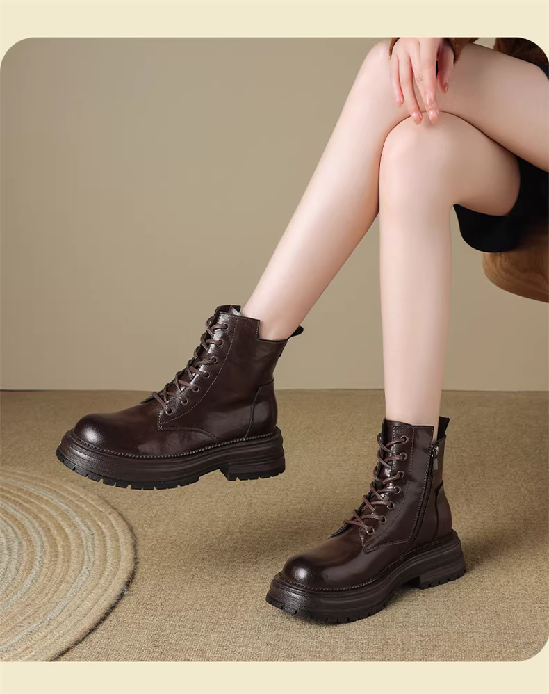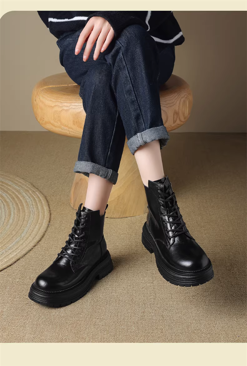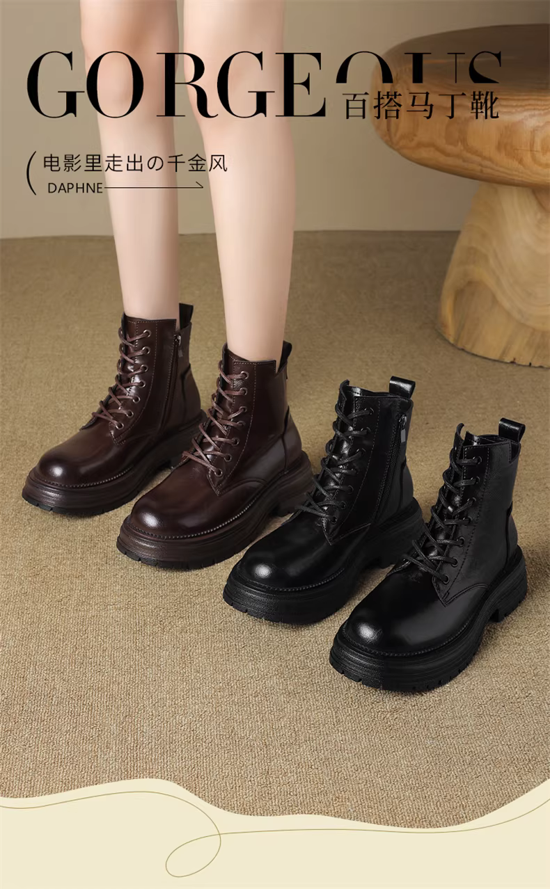 - Giày bốt Martin đế dày Daphne dành cho nữ 2025, kiểu dáng mới mùa thu, bốt cao đến giữa bắp chân, đi làm, màu đen, đa năng, kiểu Anh, bốt ngắn.