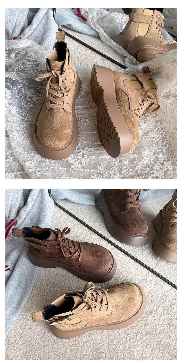 - Giày bốt Martin đế dày kiểu Anh cổ điển dành cho nữ, mẫu mới thu đông 2025, kiểu dáng thon gọn và tăng chiều cao, kiểu Birkenstock ngắn