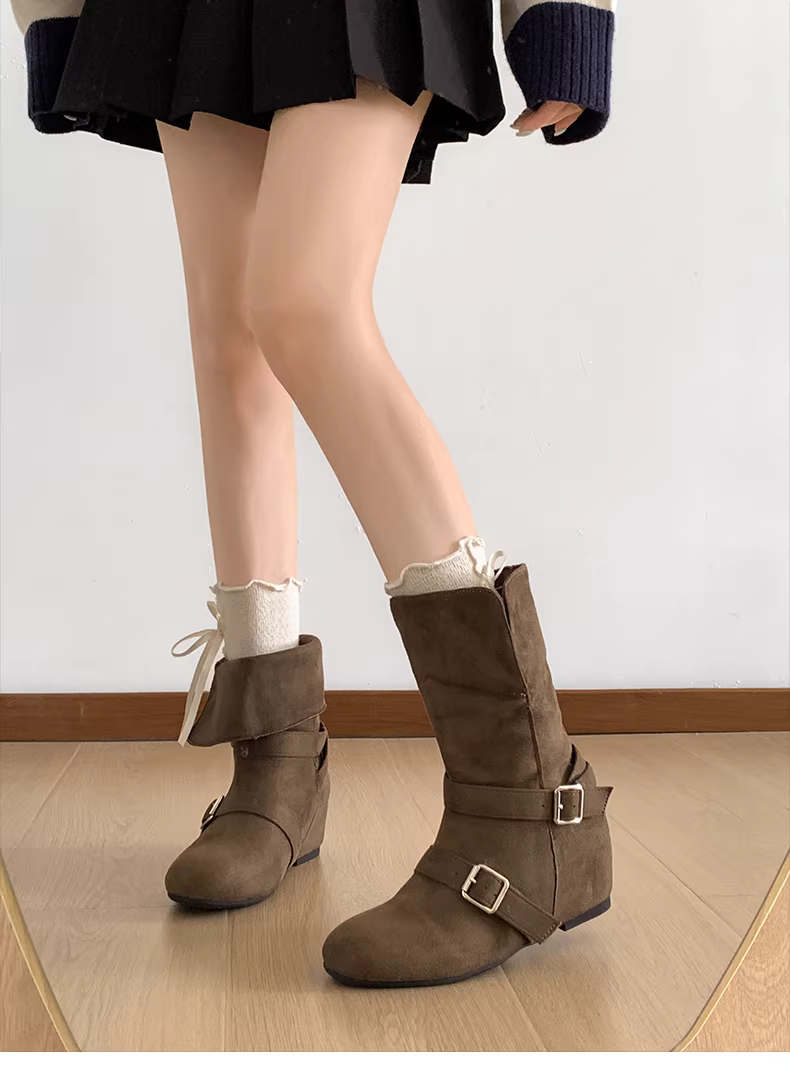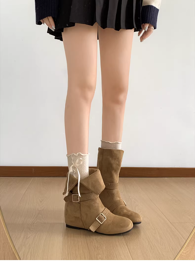 - Giày bốt Martin đế dày kiểu Anh dành cho nữ, mẫu thu đông 2025 mới, phối cùng chân váy giúp bạn trông thon gọn và cao hơn, bốt ngắn.