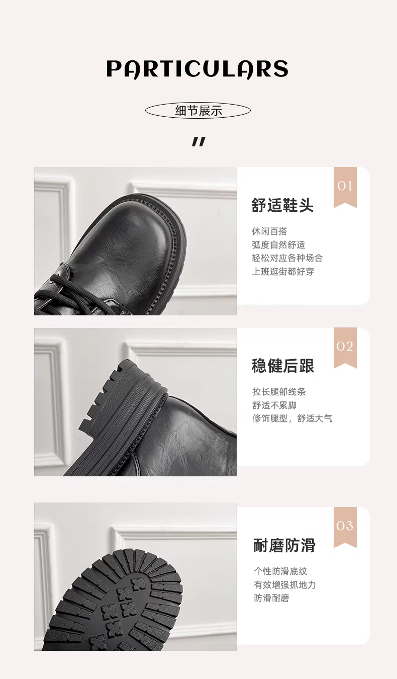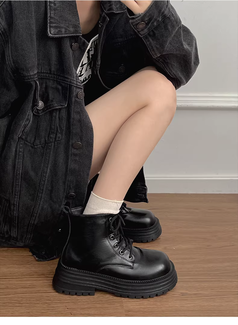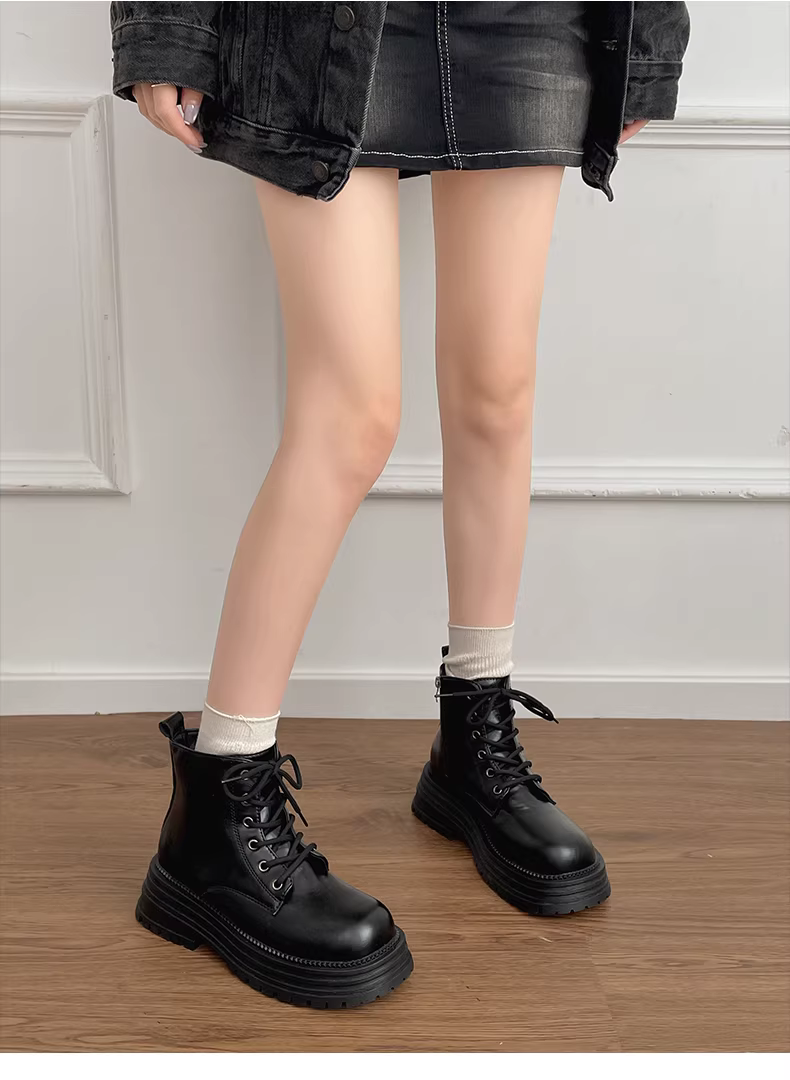 - Giày bốt Martin đế dày kiểu Anh đen dành cho nữ, mẫu thu đông 2025 mới, phối cùng chân váy giúp bạn trông thon gọn và cao hơn, bốt ngắn.