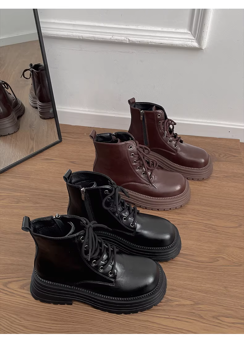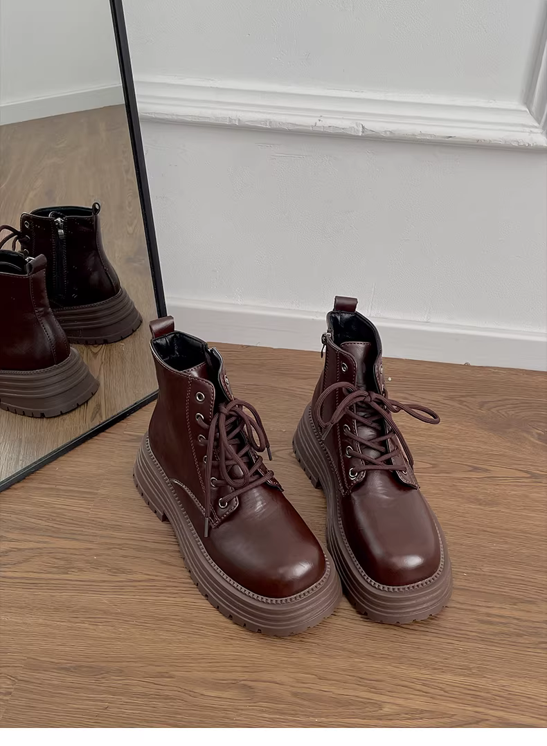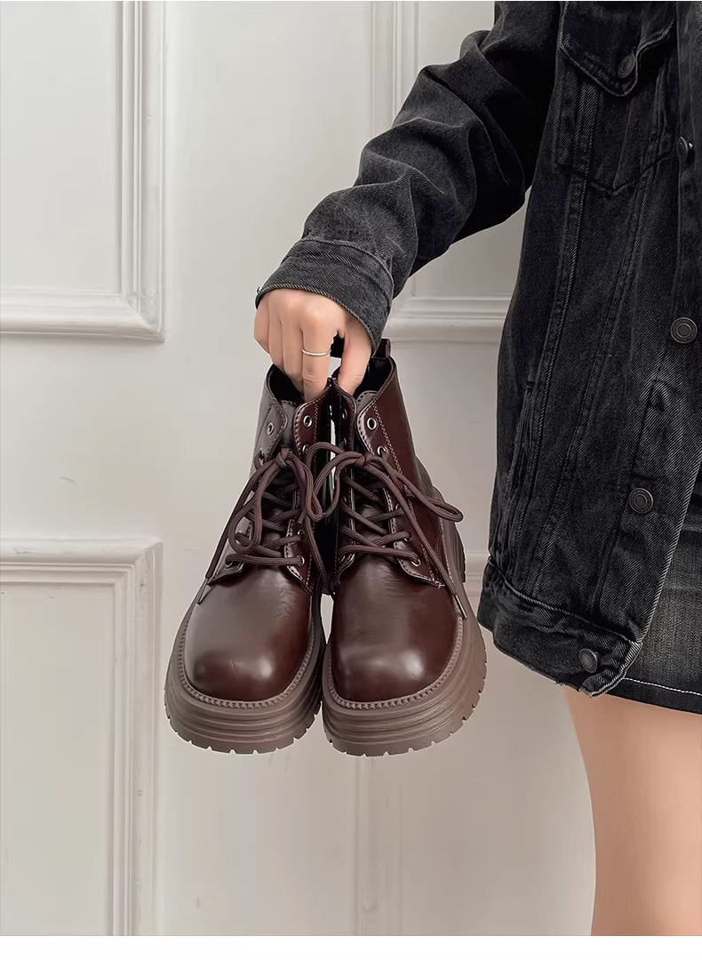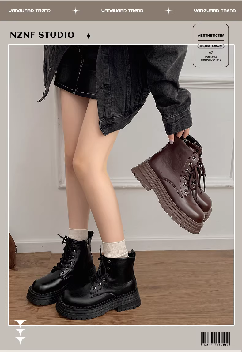 - Giày bốt Martin đế dày kiểu Anh đen dành cho nữ, mẫu thu đông 2025 mới, phối cùng chân váy giúp bạn trông thon gọn và cao hơn, bốt ngắn.