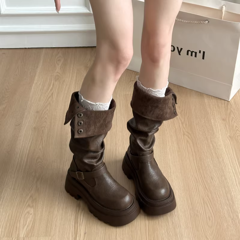 - Giày bốt Martin đế dày kiểu Anh đen, tăng chiều cao dành cho nữ, mẫu mới thu đông 2025, kiểu dáng thon gọn, cổ cao.