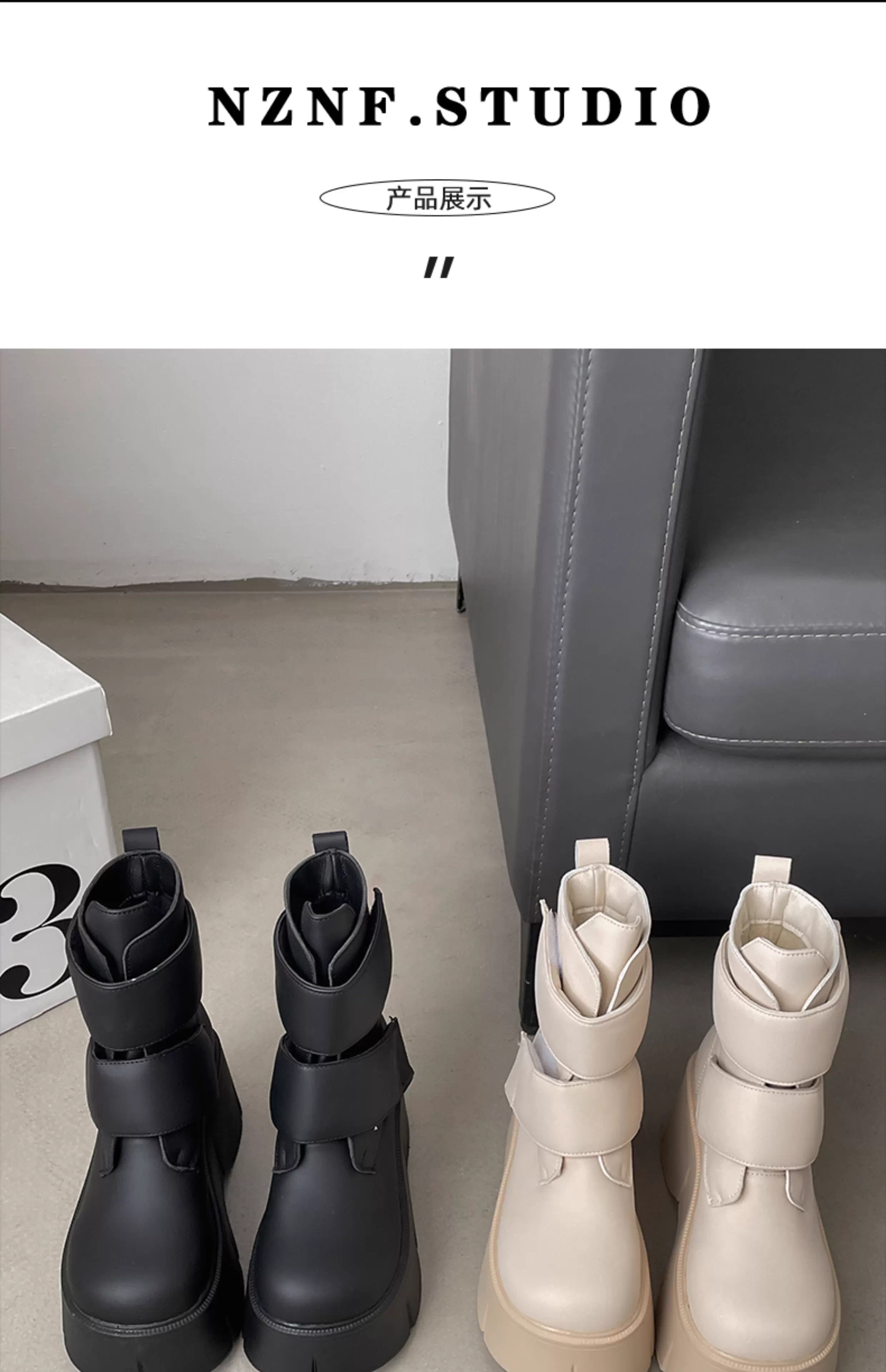 - Giày bốt Martin đế dày kiểu Anh màu trắng dành cho nữ, mẫu mới thu đông 2025, kiểu cổ điển, tăng chiều cao, đa năng.