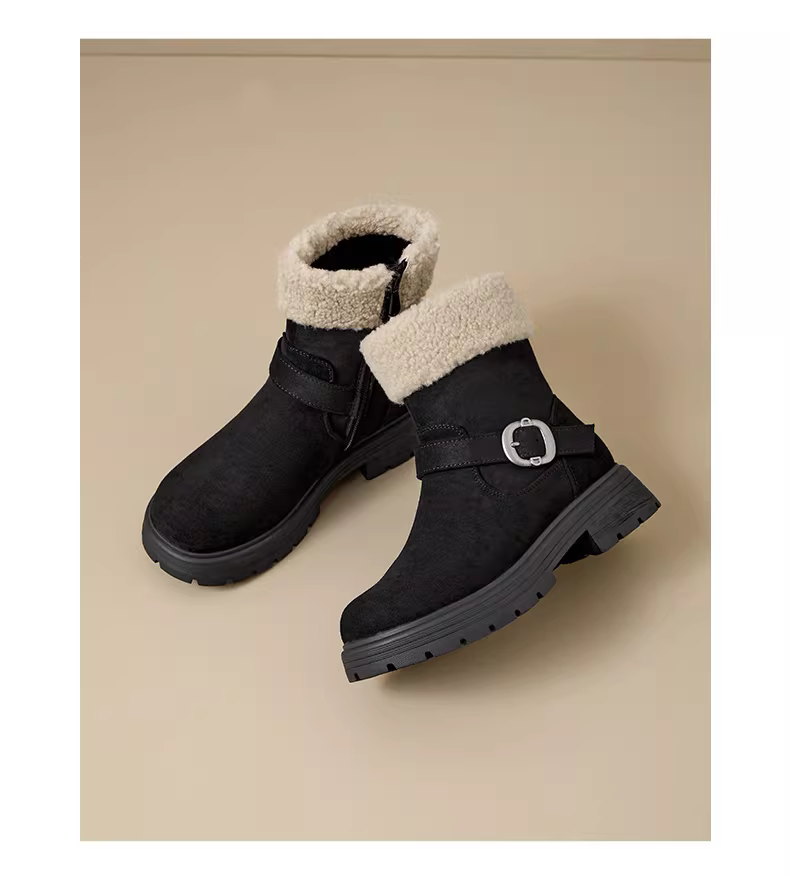 Giày bốt Martin đế dày lót lông giữ ấm cho nữ, mùa đông 2025, màu nâu Melard, giày bốt đi tuyết dành cho nữ.