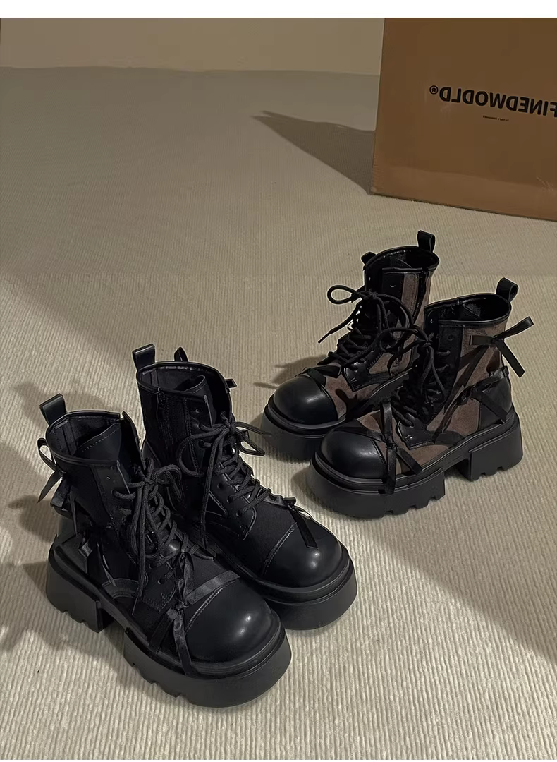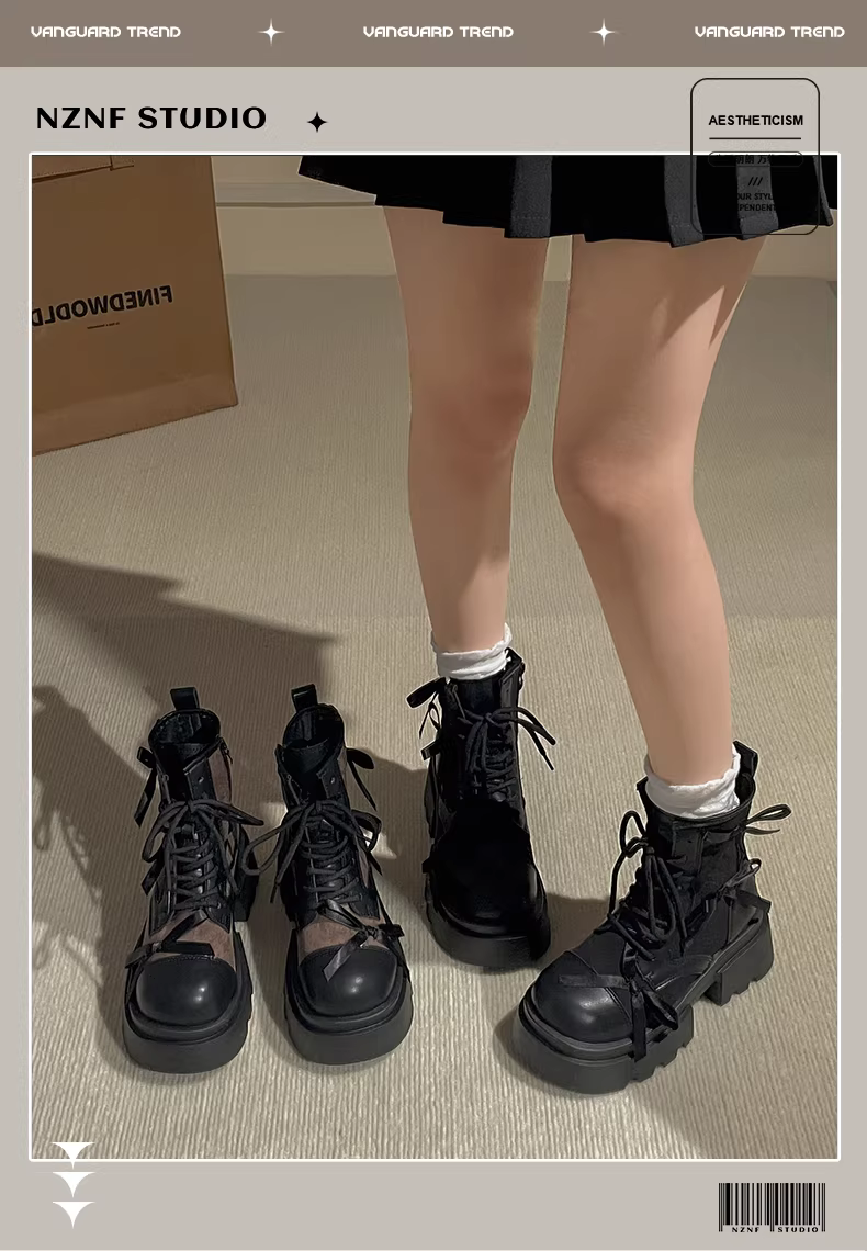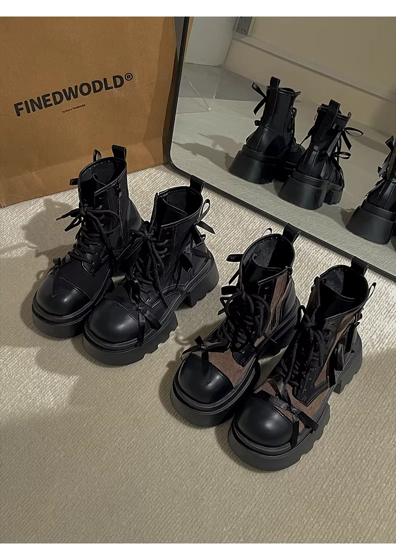 - Giày bốt Martin đế dày màu đen cổ điển dành cho nữ, kiểu thu/đông mới 2025, đa năng với chân váy, kiểu Anh.