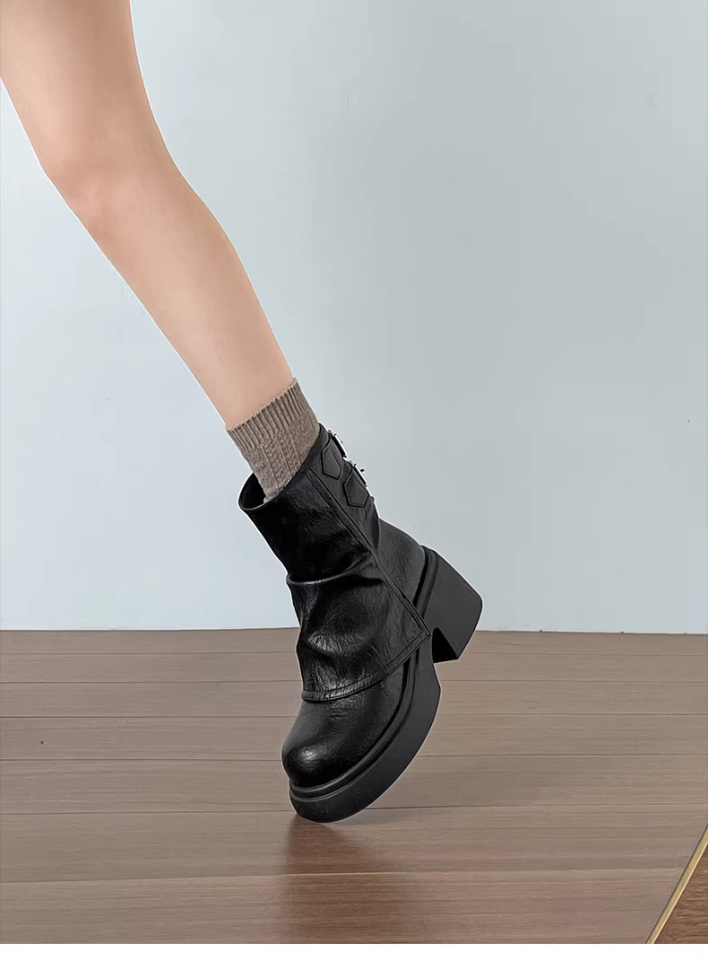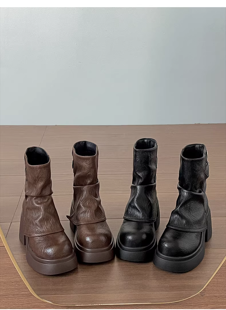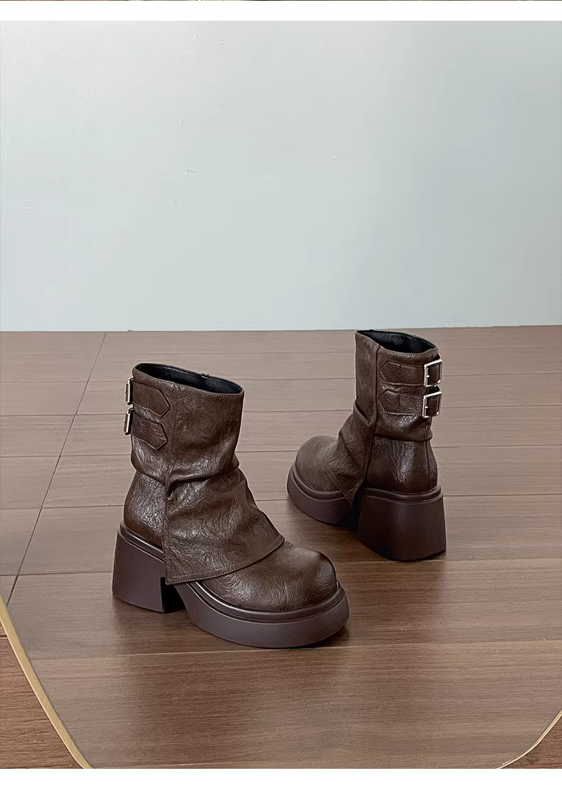 - Giày bốt Martin đế dày màu nâu Nan Zai Nan Mei La dành cho nữ, mẫu mới thu đông 2025, kiểu dáng thon gọn, tăng chiều cao.