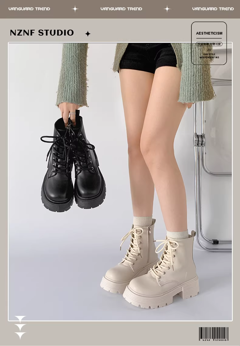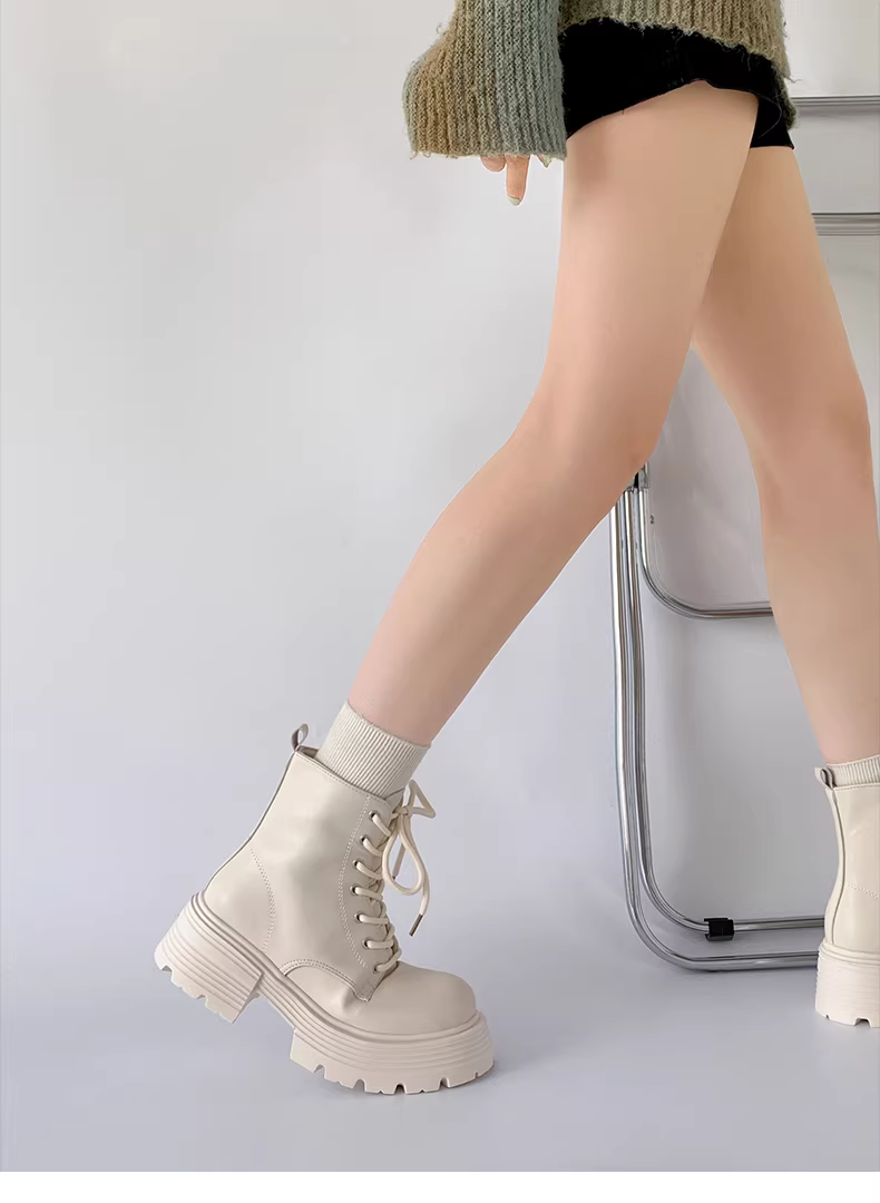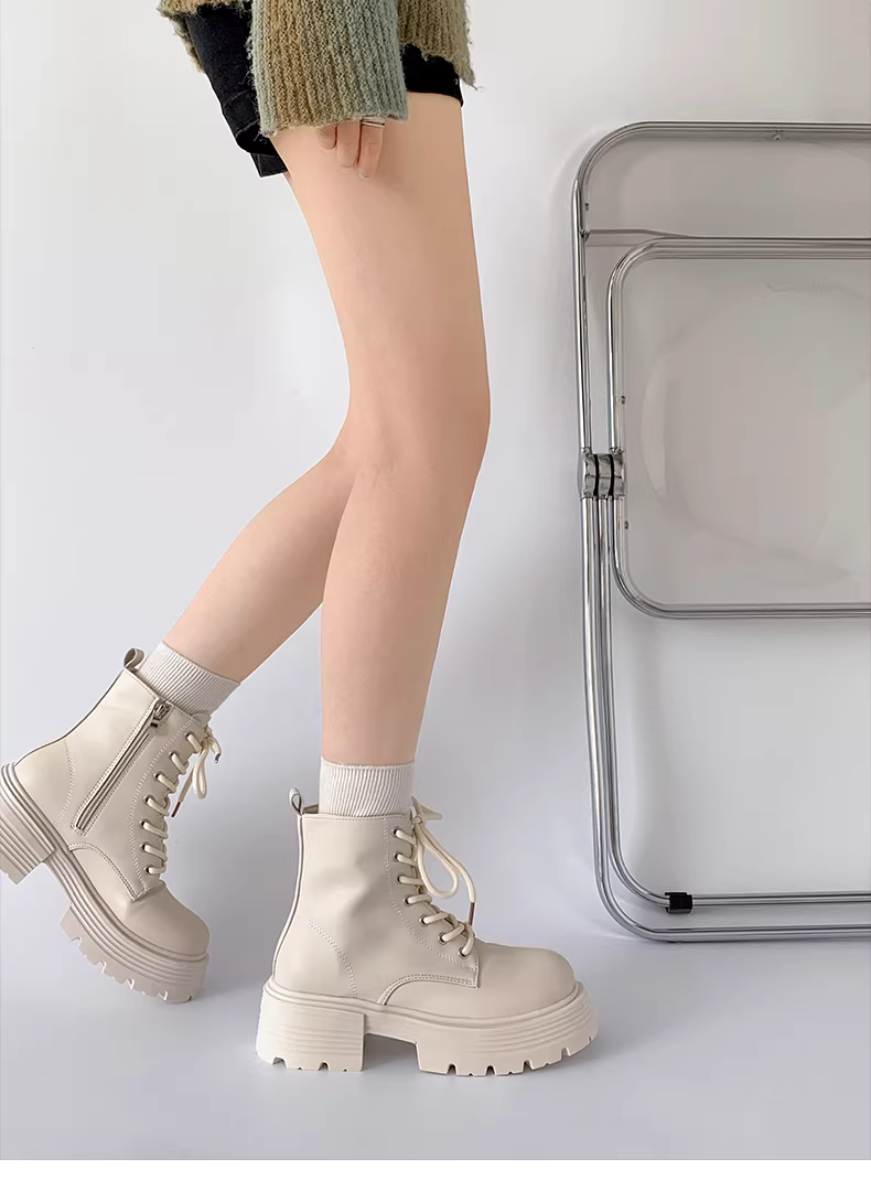 - Giày bốt Martin đế dày phong cách retro Anh quốc màu trắng phổ biến dành cho nữ, mẫu mới thu 2025, kiểu dáng ngắn tôn dáng dành cho nữ nhỏ nhắn