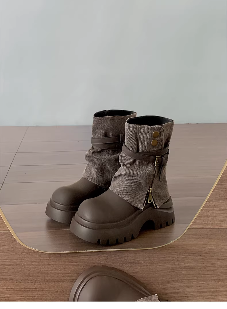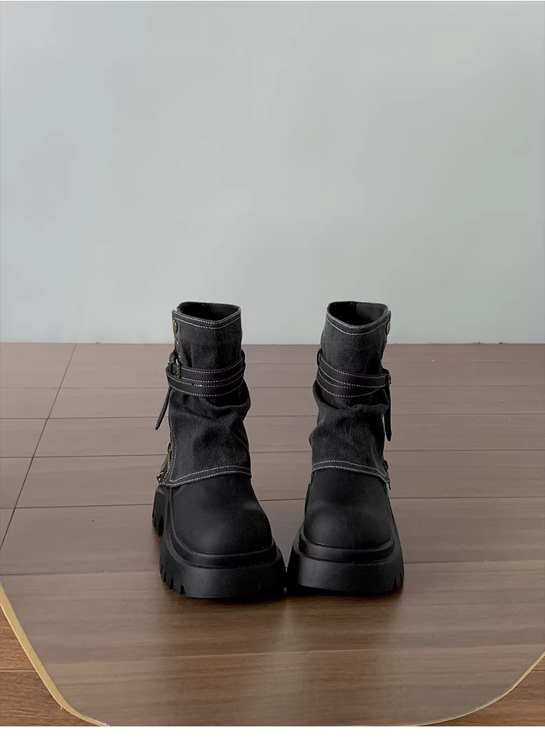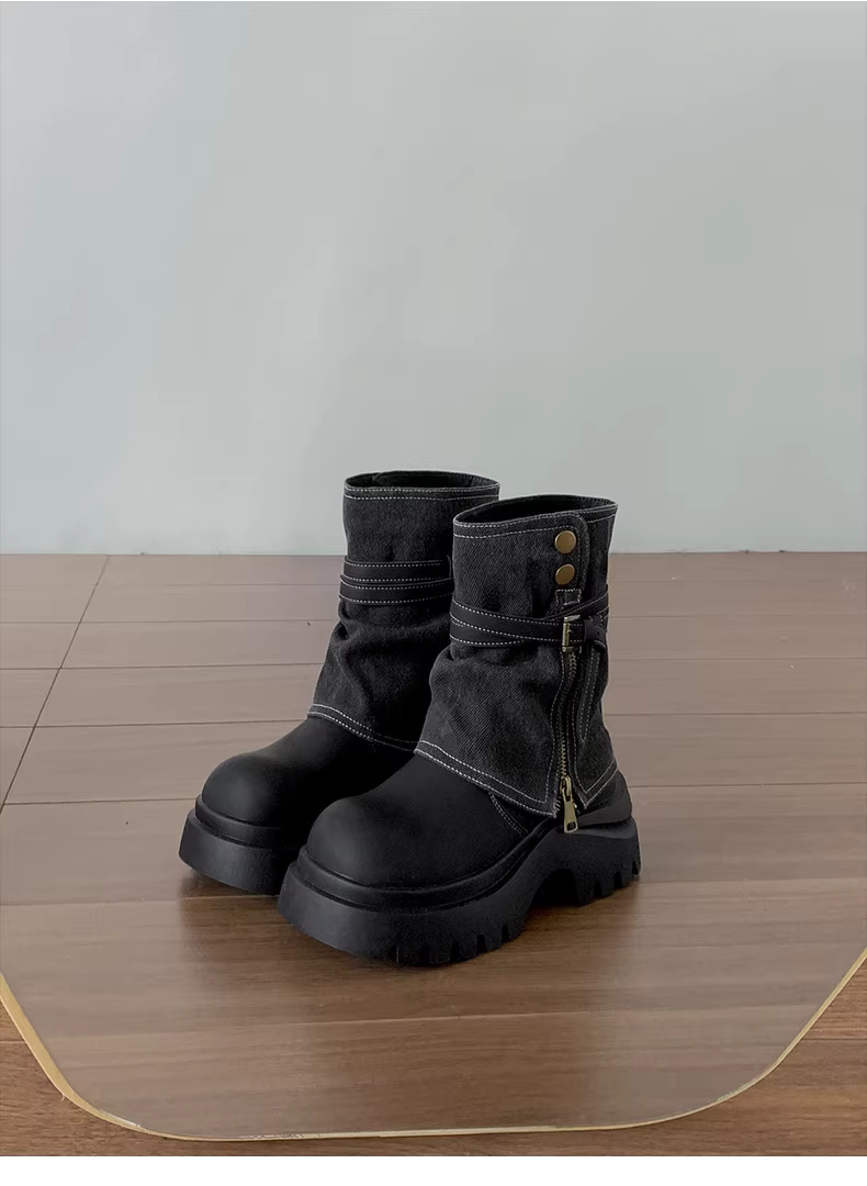 - Giày bốt Martin đế dày tăng chiều cao kiểu Anh đen, kiểu dáng cổ điển thu đông 2025, giúp thon gọn chân dành cho nữ.