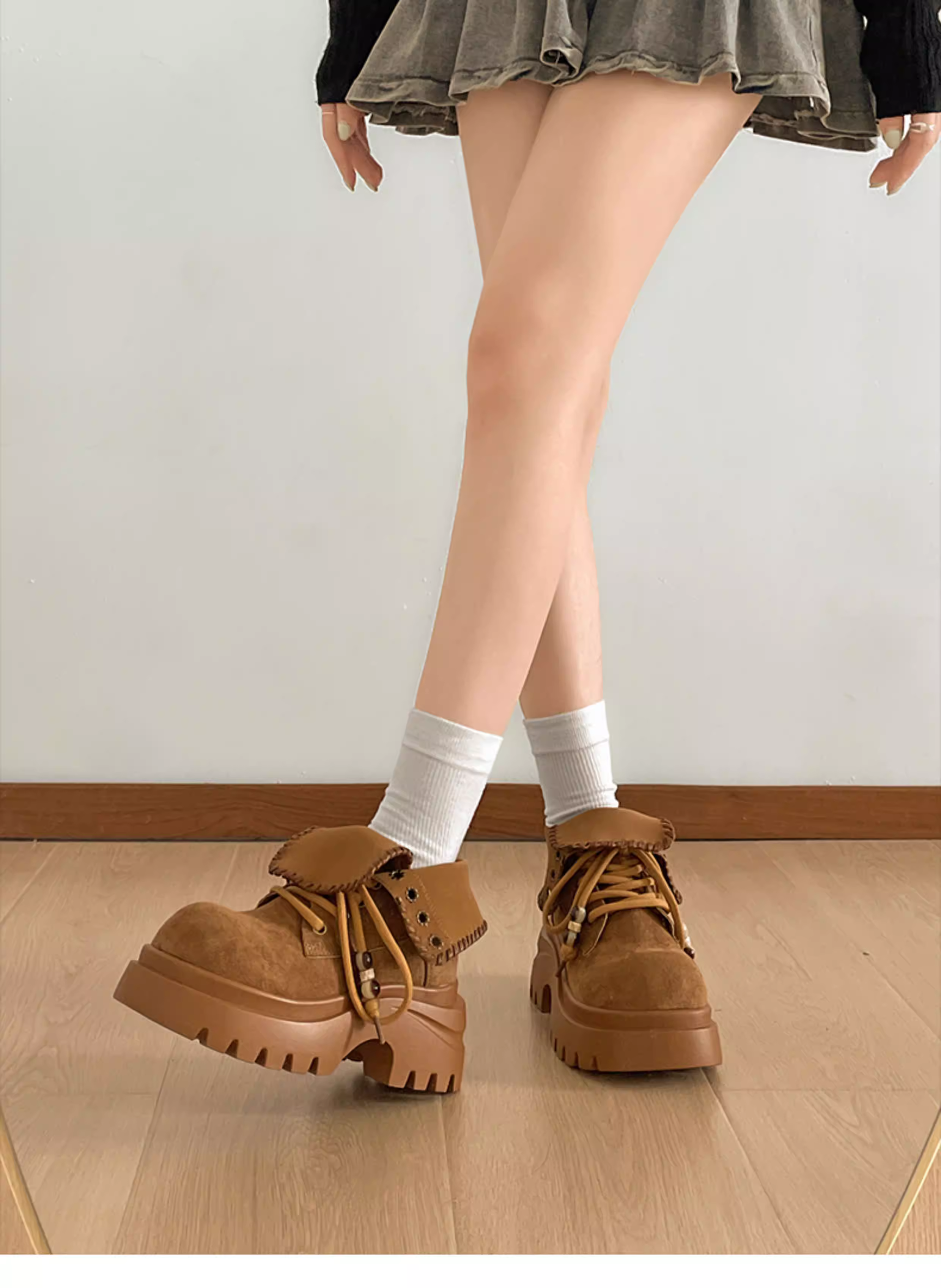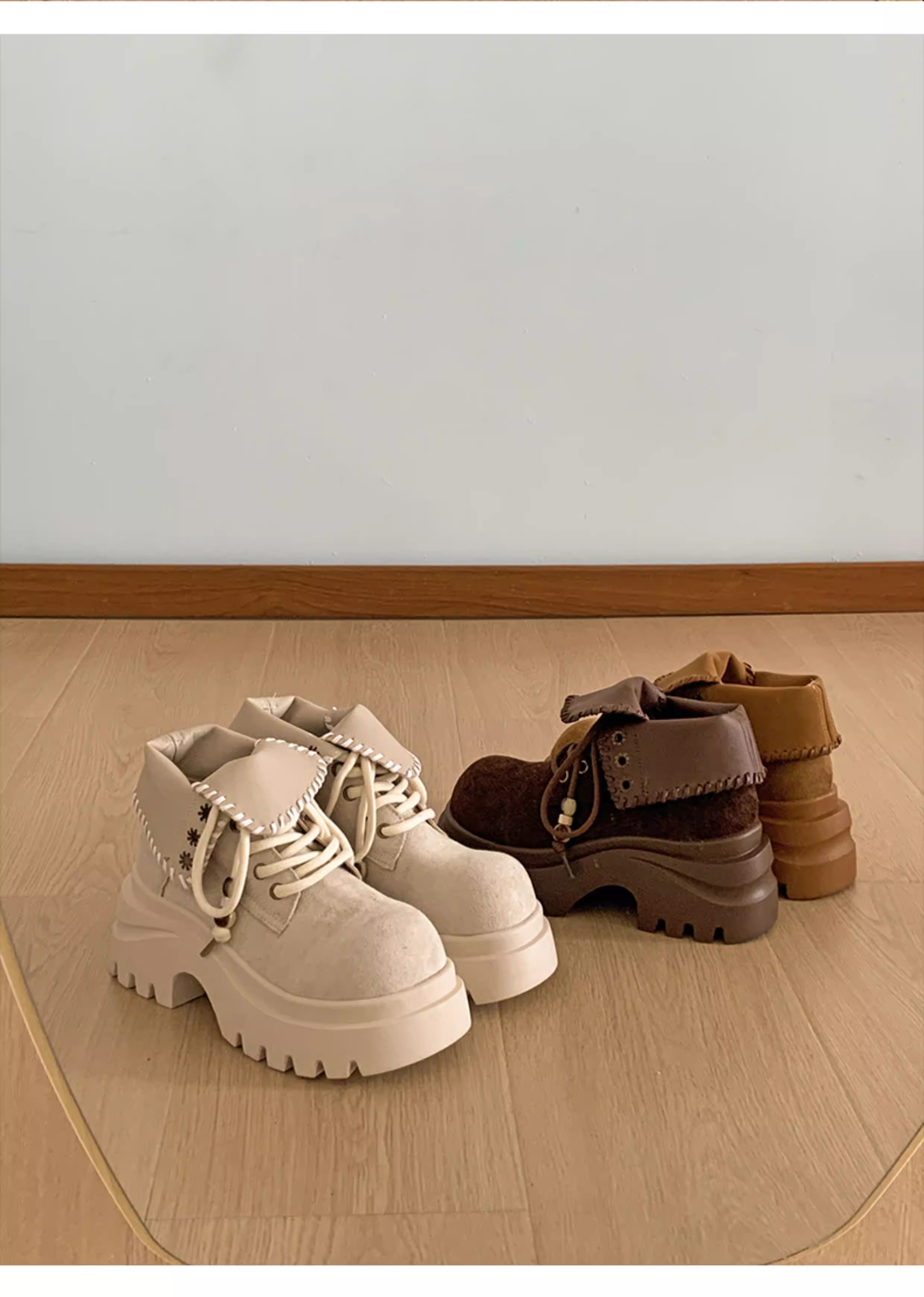 - Giày bốt Martin đế dày tăng chiều cao kiểu Anh màu trắng dành cho phụ nữ nhỏ nhắn, mẫu mới thu đông 2025, kiểu dáng cổ điển, tôn dáng.