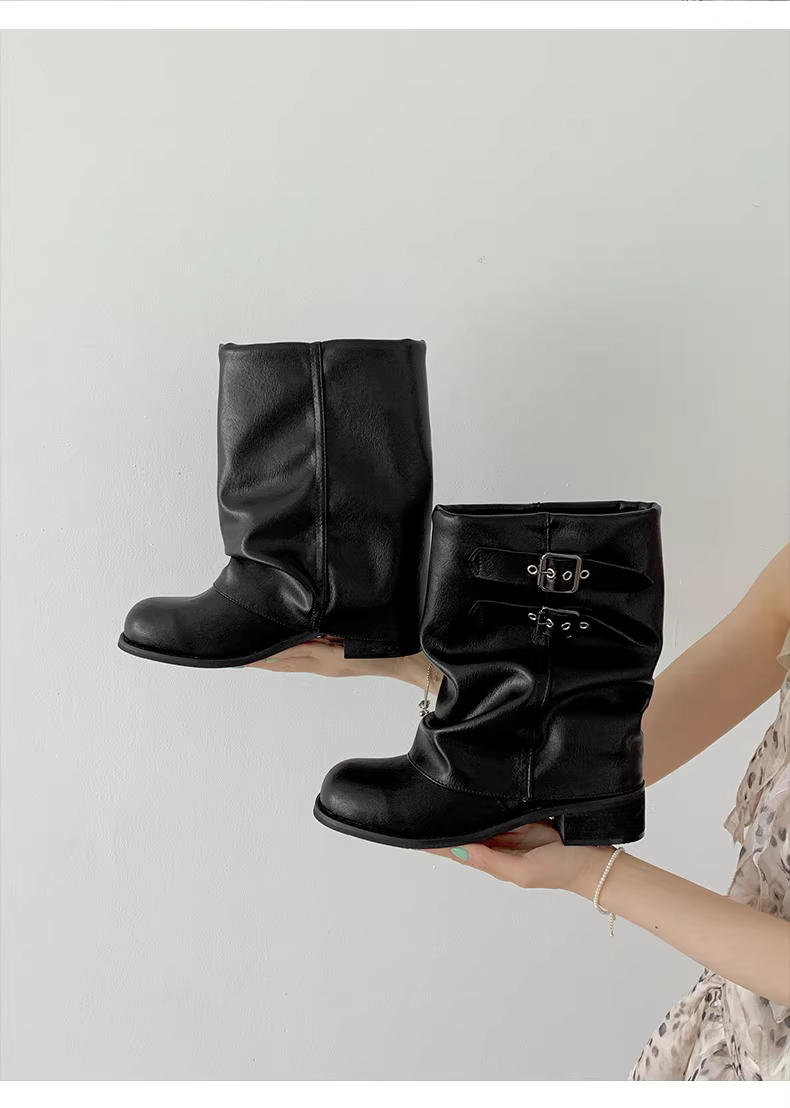 - Giày bốt Martin đế thô kiểu Anh cổ điển màu đen dành cho nữ, phong cách Thu/Đông 2025 mới, phối cùng chân váy, kiểu dáng thoải mái.