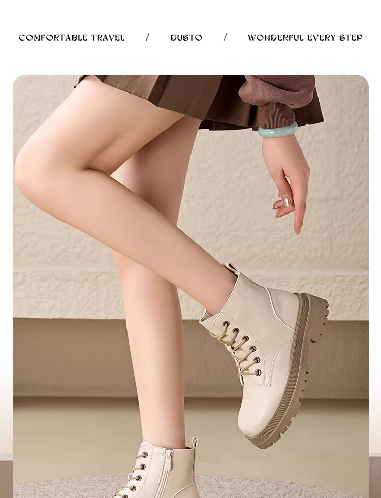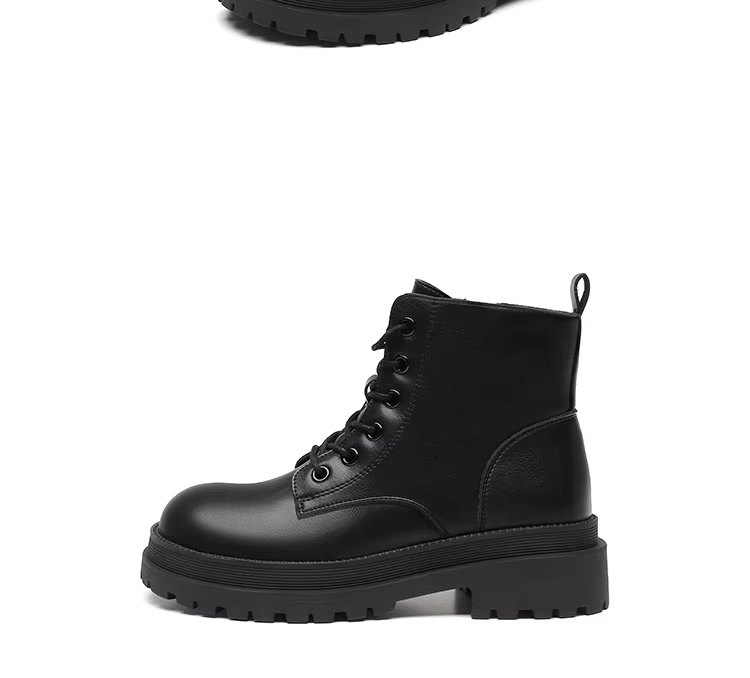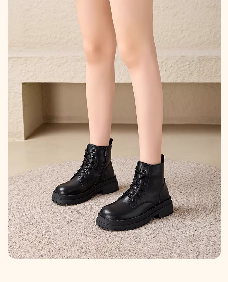 - Giày bốt Martin đen chính hãng Dadong dành cho nữ 2025, kiểu mới thu đông, lót lông cừu, cổ ngắn, phong cách Anh, đế dày