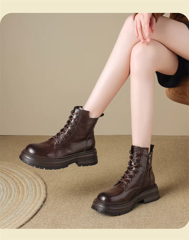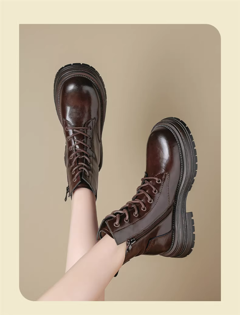 - Giày bốt Martin đen Daphne dành cho nữ, đế dày tăng chiều cao, mẫu mới thu đông 2025, lót lông cừu, kiểu Anh, cổ thấp.