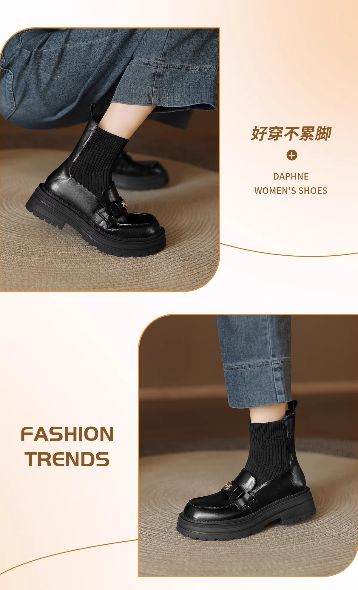 - Giày bốt Martin đen Daphne dành cho nữ kiểu mới 2025, kiểu dáng ôm sát, chất liệu dệt kim, kiểu bốt tất, giày lười đế dày kiểu Anh, bốt ngắn