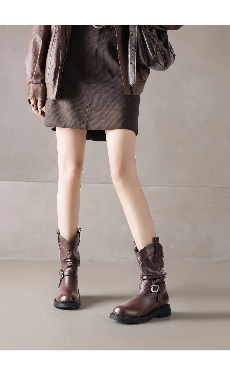 - Giày bốt Martin đen Daphne dành cho nữ, mẫu mới thu đông 2025, đế dày, phong cách retro Anh, kiểu bốt ngắn đến giữa bắp chân, kiểu bốt lười.