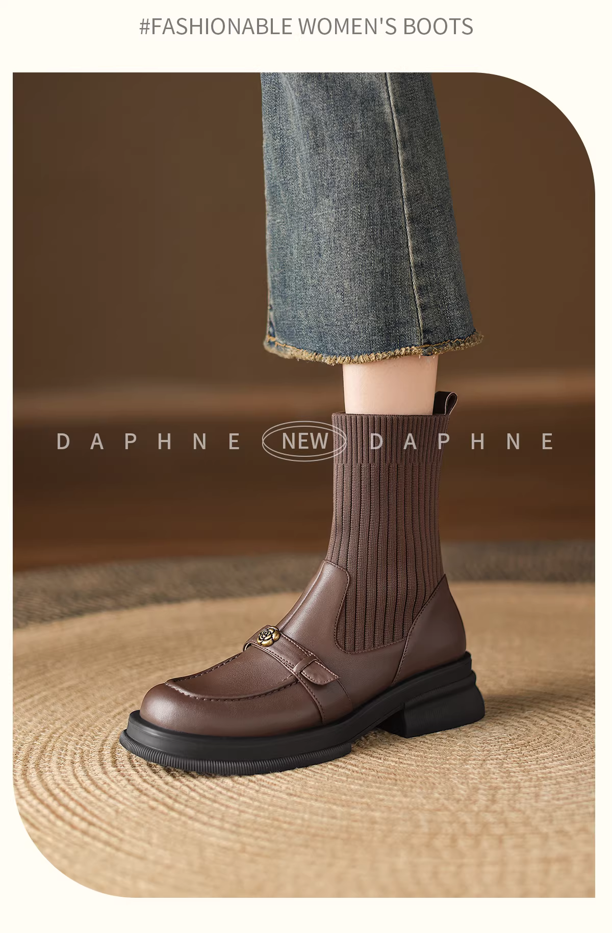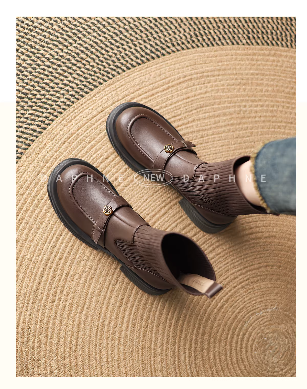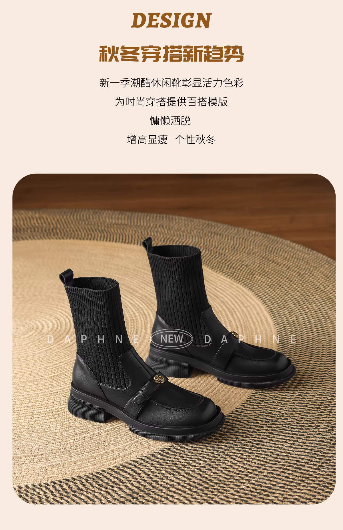 - Giày bốt Martin đen Daphne dành cho nữ, mẫu mới thu đông 2025, phong cách Anh, lót lông, kiểu ôm sát, kiểu vớ, kiểu lười, bốt ngắn