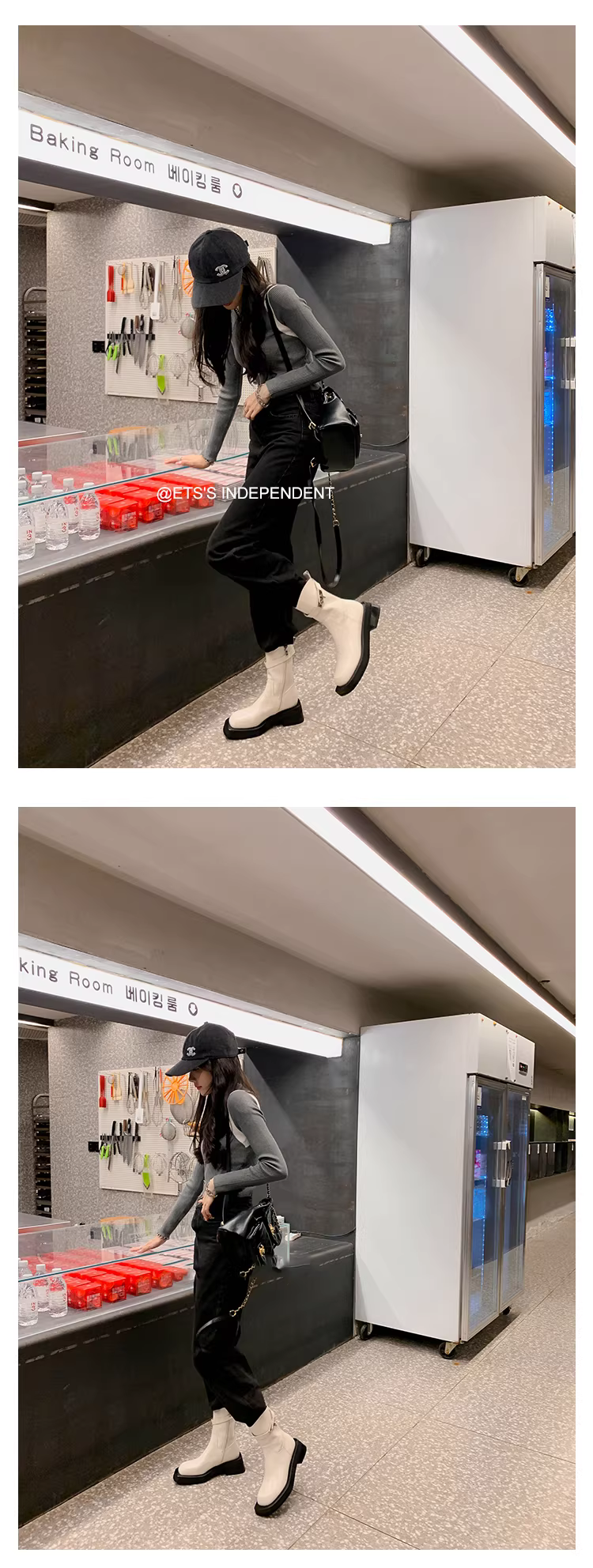- Giày bốt Martin kiểu Anh đế dày bằng da thật Pear Xiaoqi dành cho nữ, giày Chelsea phong cách đường phố ngọt ngào và cá tính, giày bốt ống khói đế phẳng, giày bốt ngắn.
