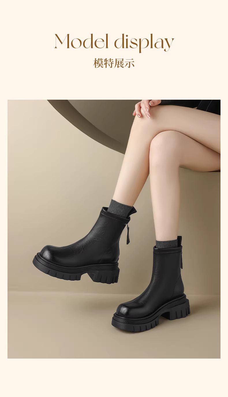 Giày bốt Martin màu nâu Daphne dành cho nữ mùa đông 2025, kiểu mới đế dày tăng chiều cao, kiểu Melard cổ ngắn có lót lông cừu