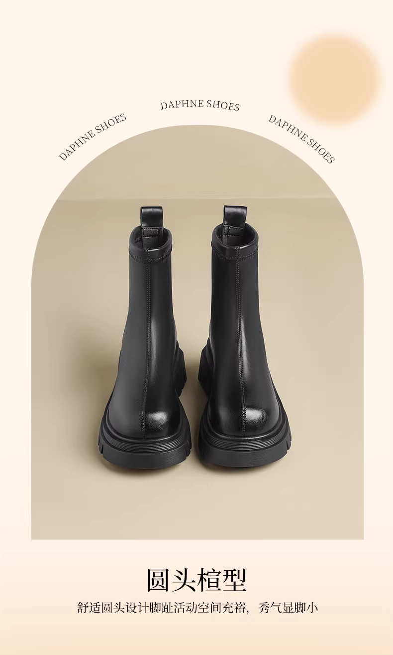 - Giày bốt Martin màu nâu Daphne dành cho nữ mùa đông 2025, kiểu mới đế dày tăng chiều cao, kiểu Melard cổ ngắn có lót lông cừu