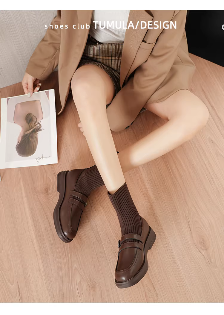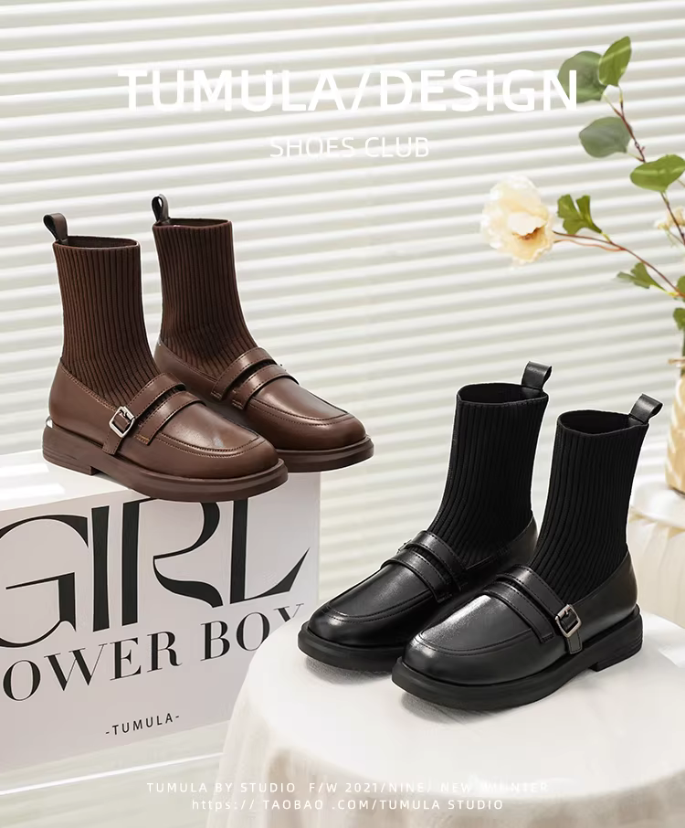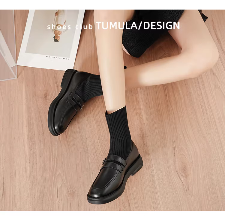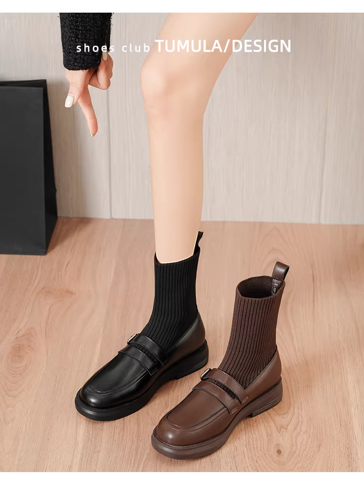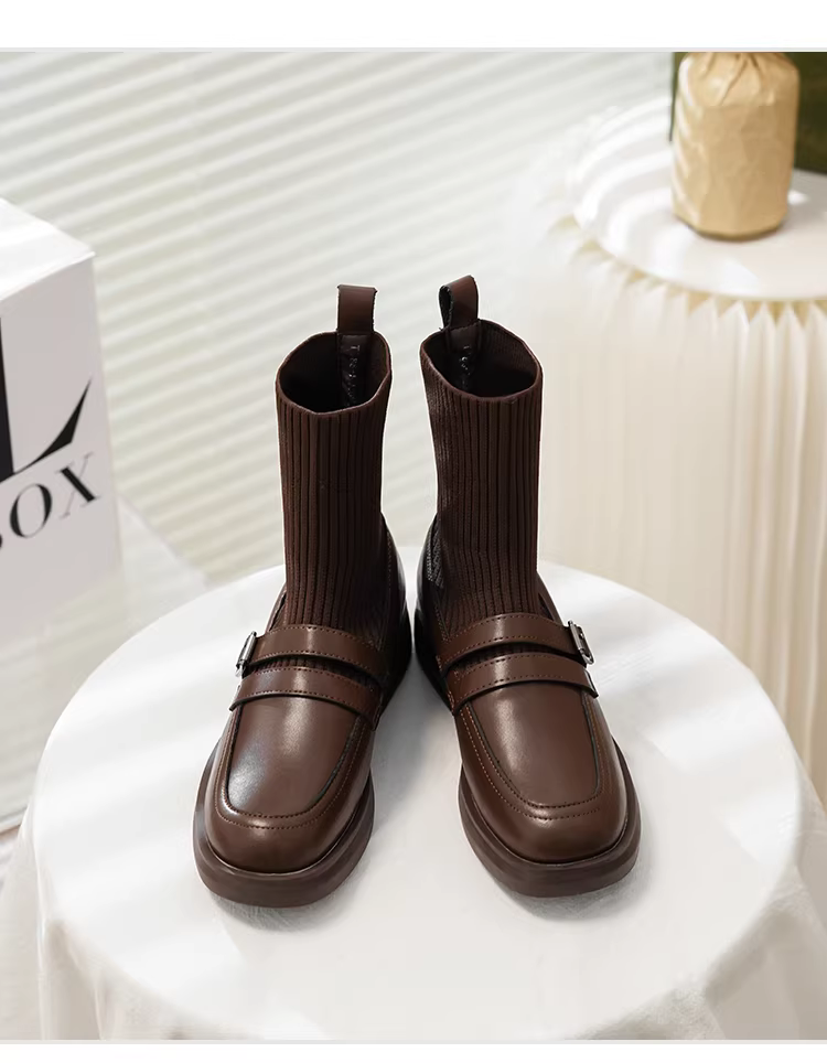 - Giày bốt Martin tăng chiều cao bằng da thật dành cho nữ, bốt dáng ôm phong cách Anh, bốt ngắn đế dày, bốt tất thun co giãn thon gọn, lót lông cừu mùa đông.