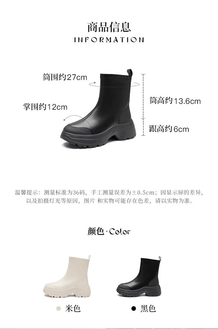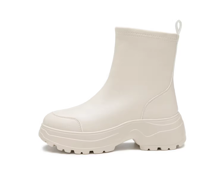 - Giày bốt Martin tăng chiều cao Dadong dành cho nữ, mẫu mới thu đông 2025, giày bốt ngắn đế dày màu trắng thời thượng, phối cùng chân váy.