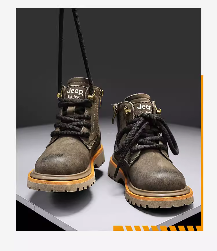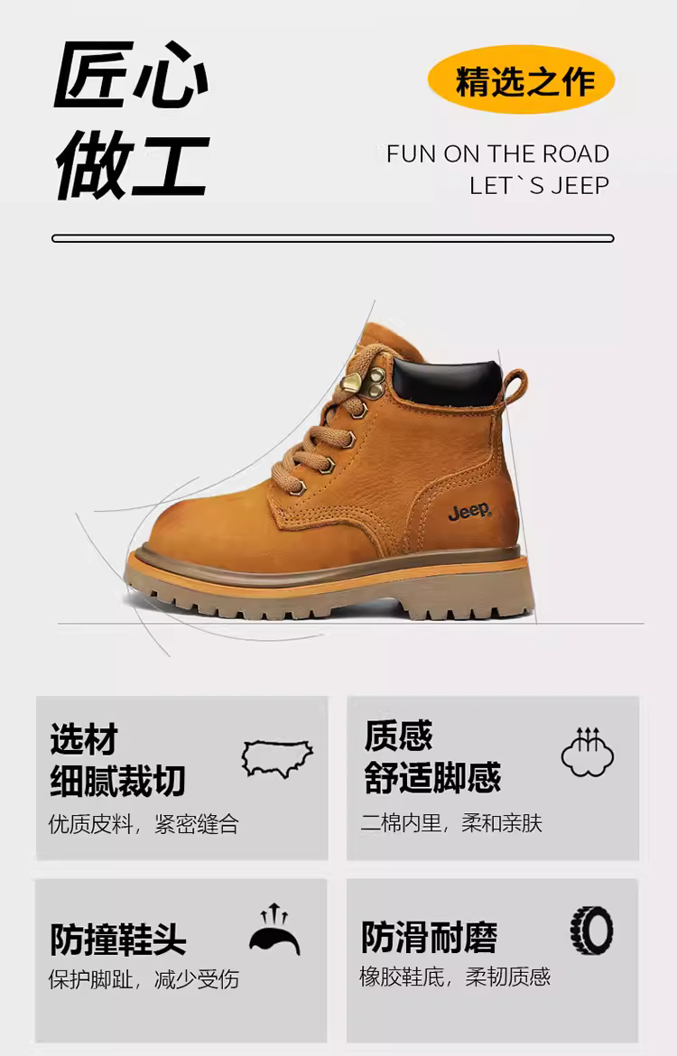 - Giày bốt màu vàng cổ điển dành cho trẻ em Jeep Giày bốt da thật dành cho bé trai và bé gái Giày bốt ngắn chống thấm nước lót lông cừu mùa đông 2025