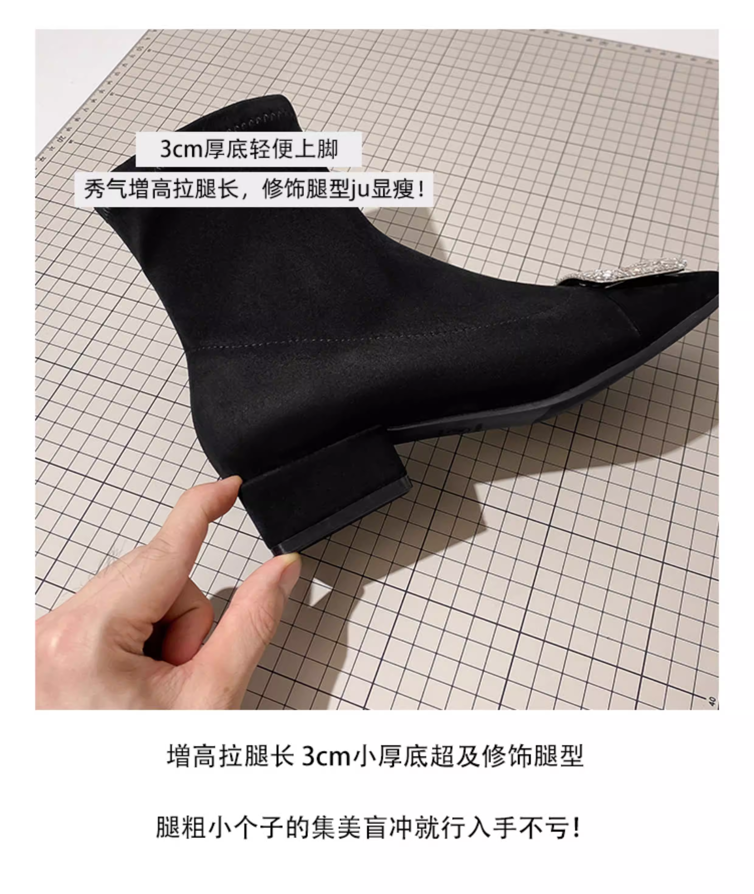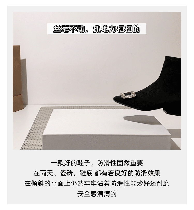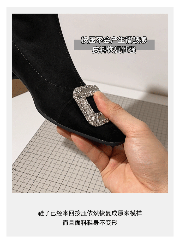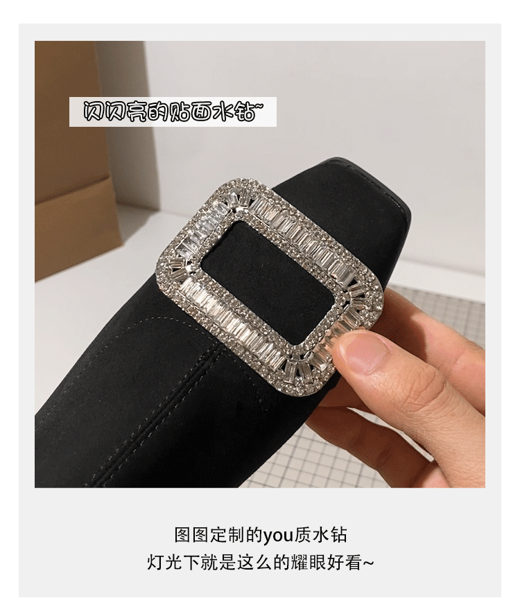 - Giày bốt mỏng cho nữ, bốt ngắn gót thô, bốt cổ chân kiểu Pháp, bốt da lộn mũi vuông đính đá, bốt Martin tôn dáng hợp thời trang.