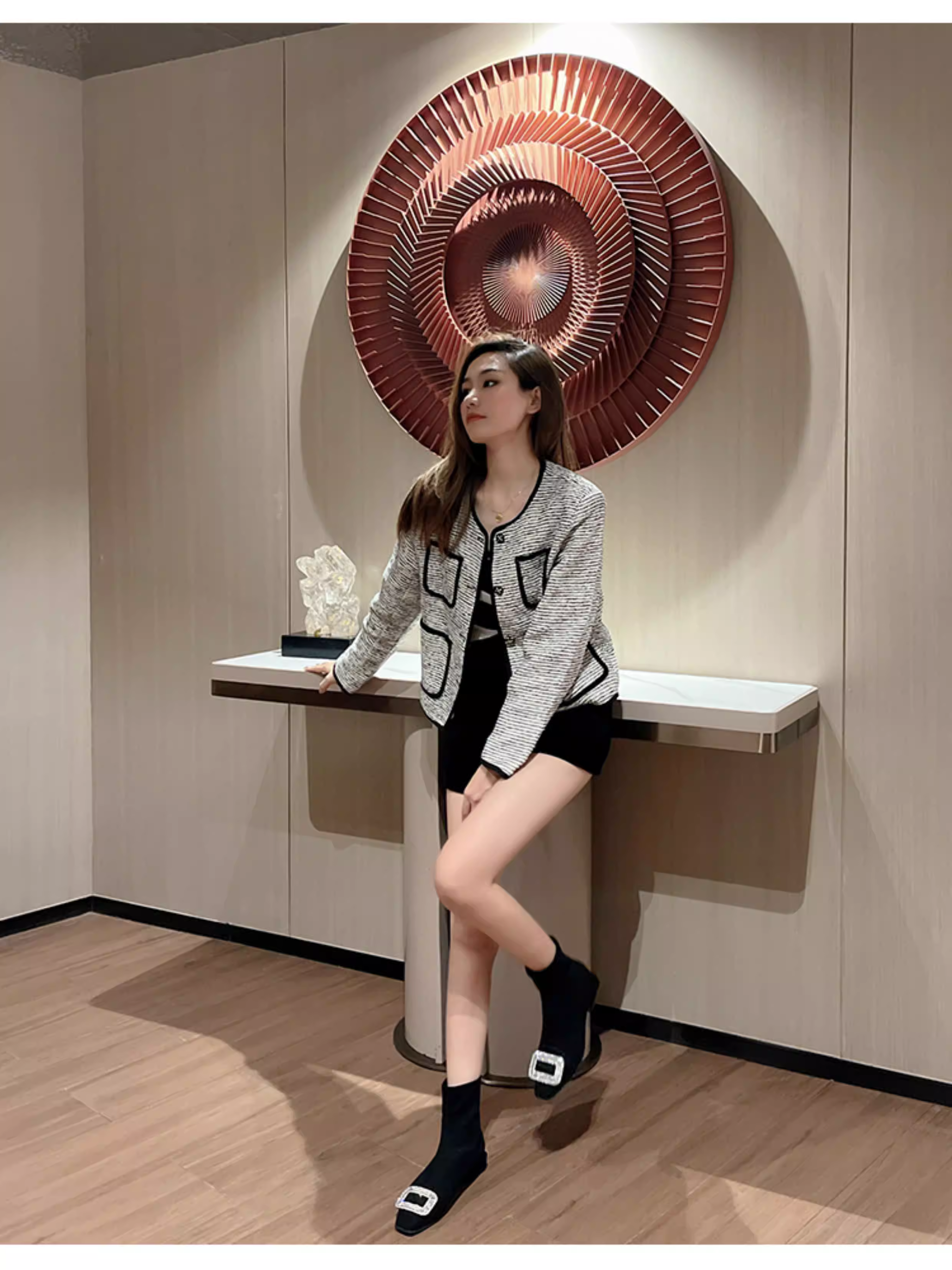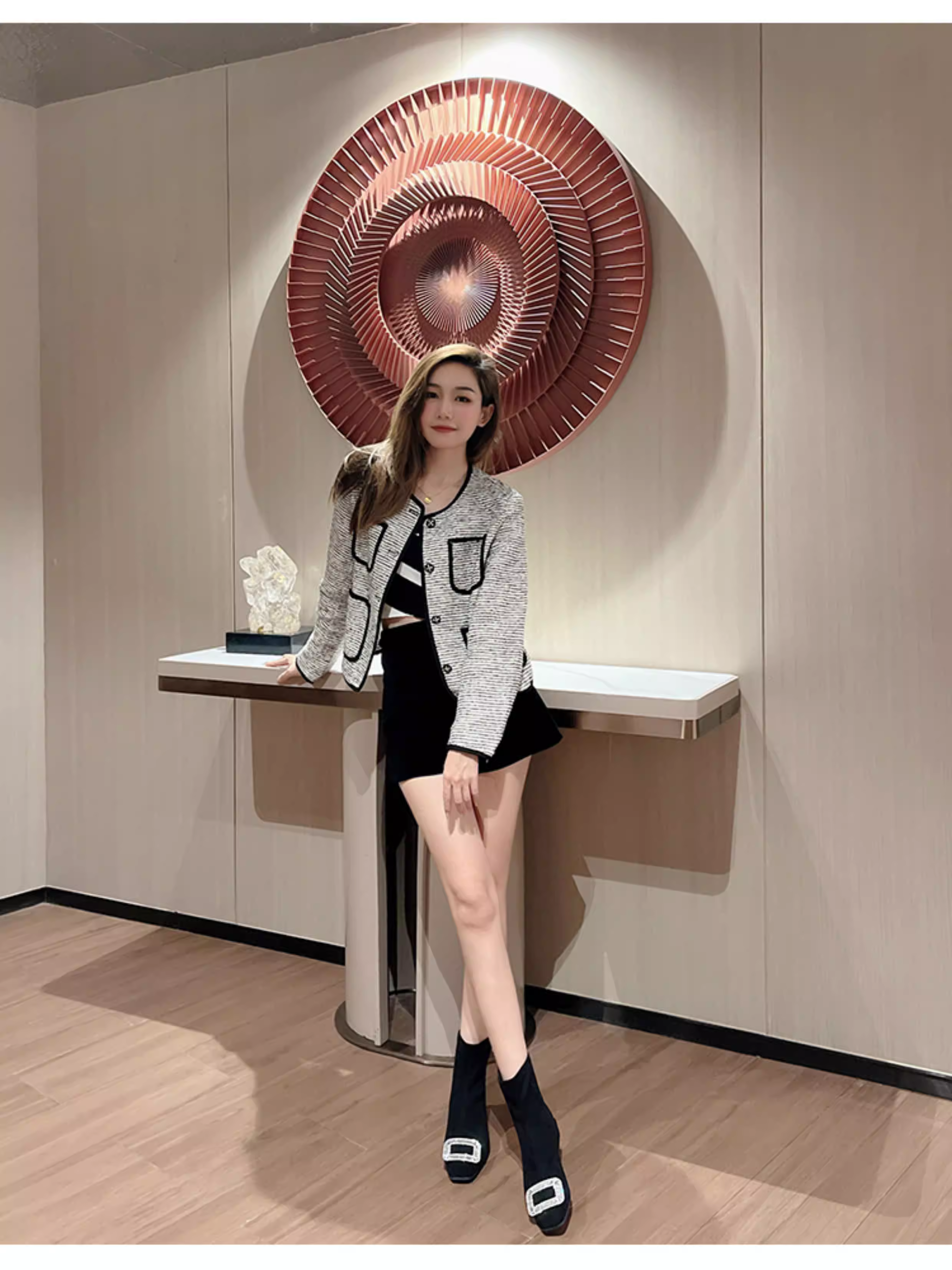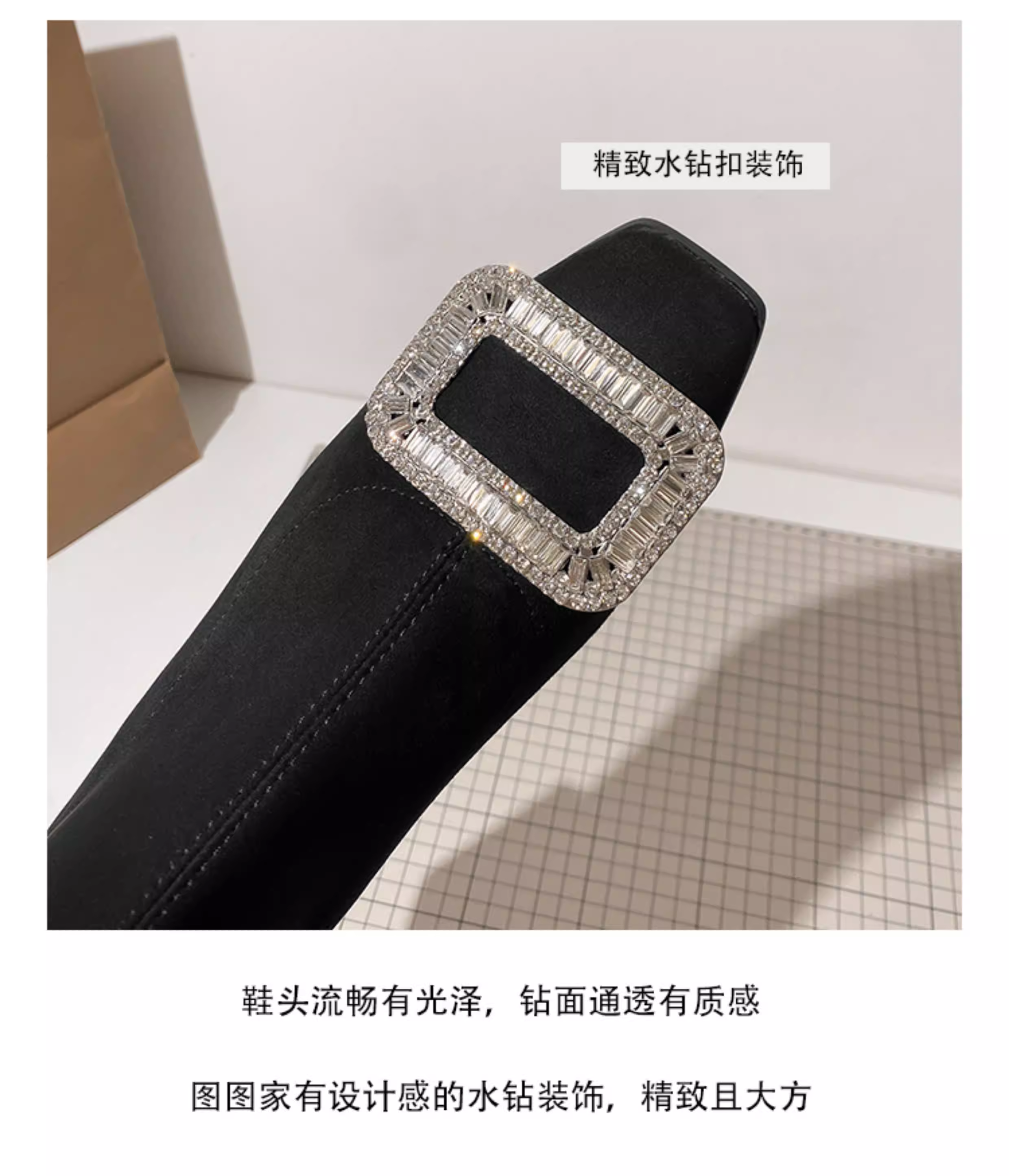 - Giày bốt mỏng cho nữ, bốt ngắn gót thô, bốt cổ chân kiểu Pháp, bốt da lộn mũi vuông đính đá, bốt Martin tôn dáng hợp thời trang.