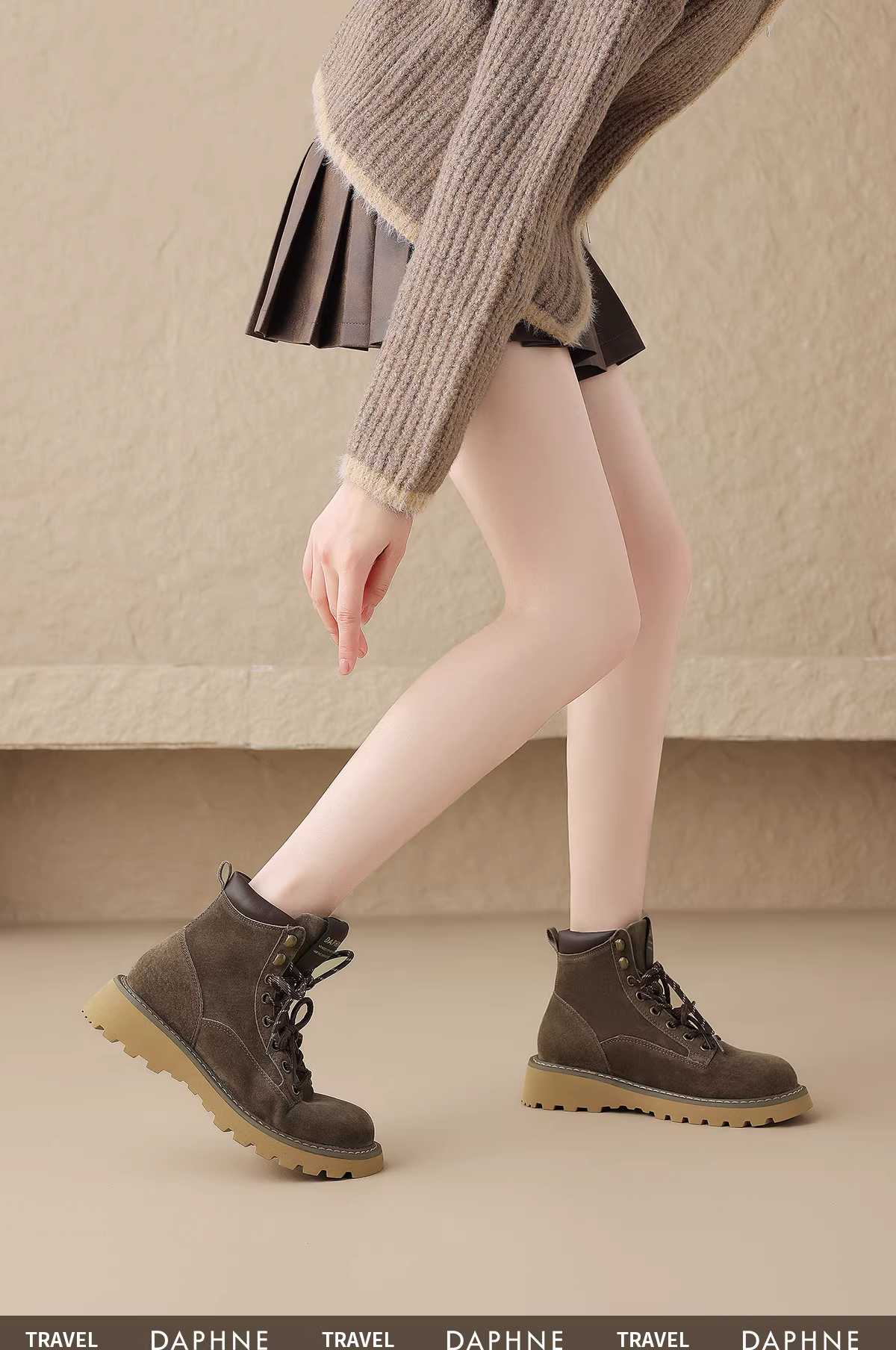 - Giày bốt mùa đông Daphne dành cho nữ 2025 kiểu Anh mới, giày bốt Melard mùa thu đông đế dày đi bộ đường dài cổ ngắn