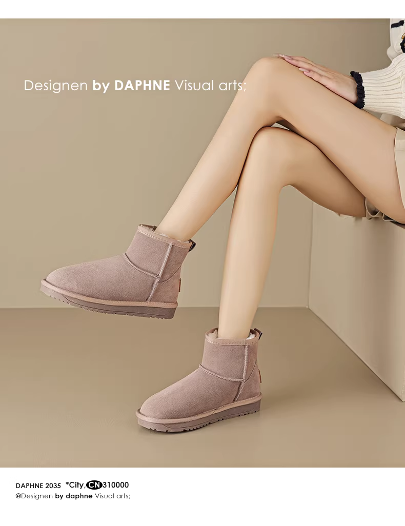 Giày bốt mùa đông Daphne Northeast dành cho nữ 2025 bán chạy, kiểu dáng trung bình, đế dày, giữ ấm, kiểu lười, có lớp lót lông cừu