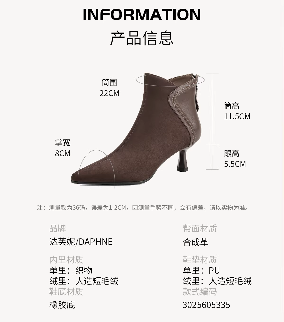 - Giày bốt mũi nhọn Daphne dành cho nữ 2025, kiểu Pháp mới mùa thu đông, bốt ngắn gót nhọn, bốt cổ chân màu đen, giày mẹ dành cho nữ