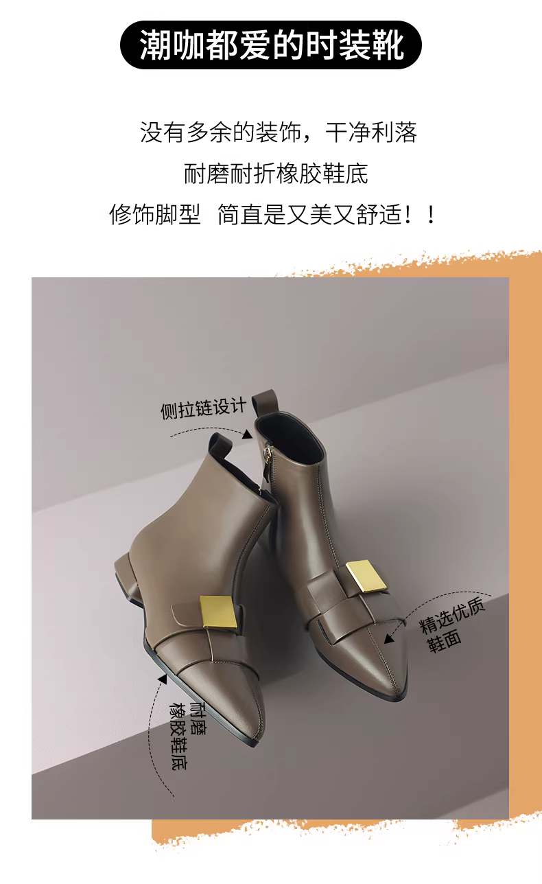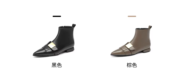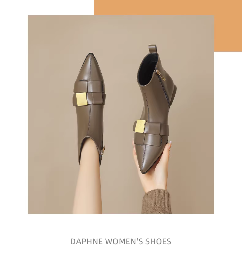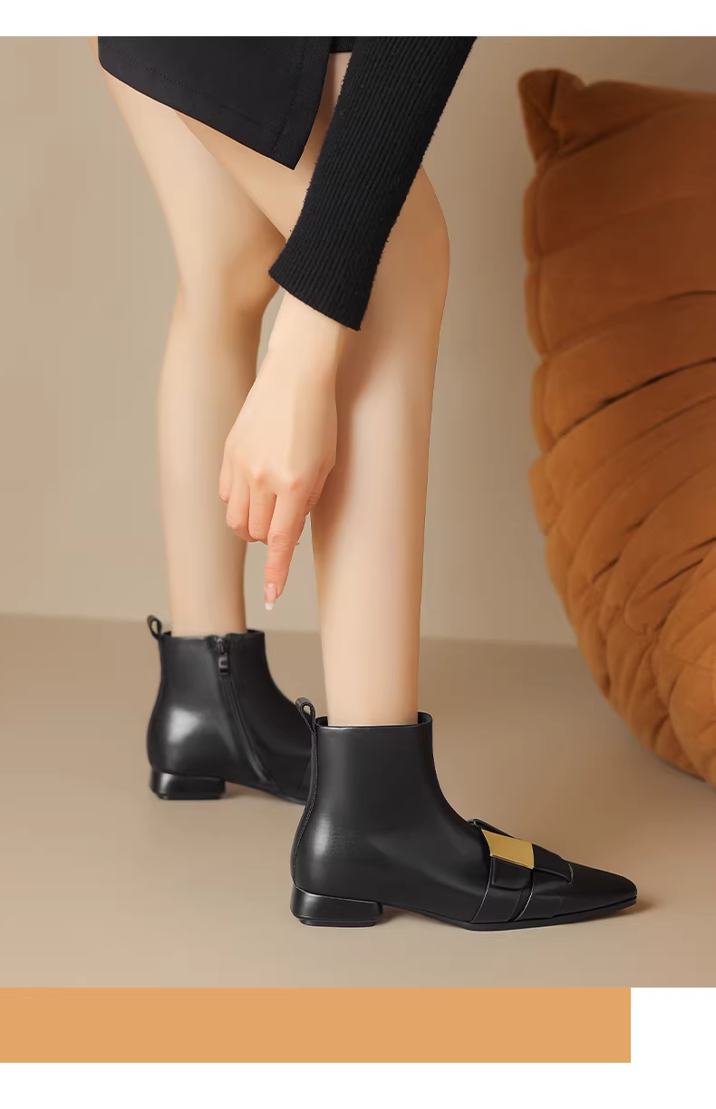 Giày bốt mũi nhọn ngắn dành cho nữ, mùa thu đông, phong cách Chanel, giày bốt đế bằng mỏng dành cho nữ, kiểu mới 2025, lót lông cừu và dày dặn kiểu Martin.