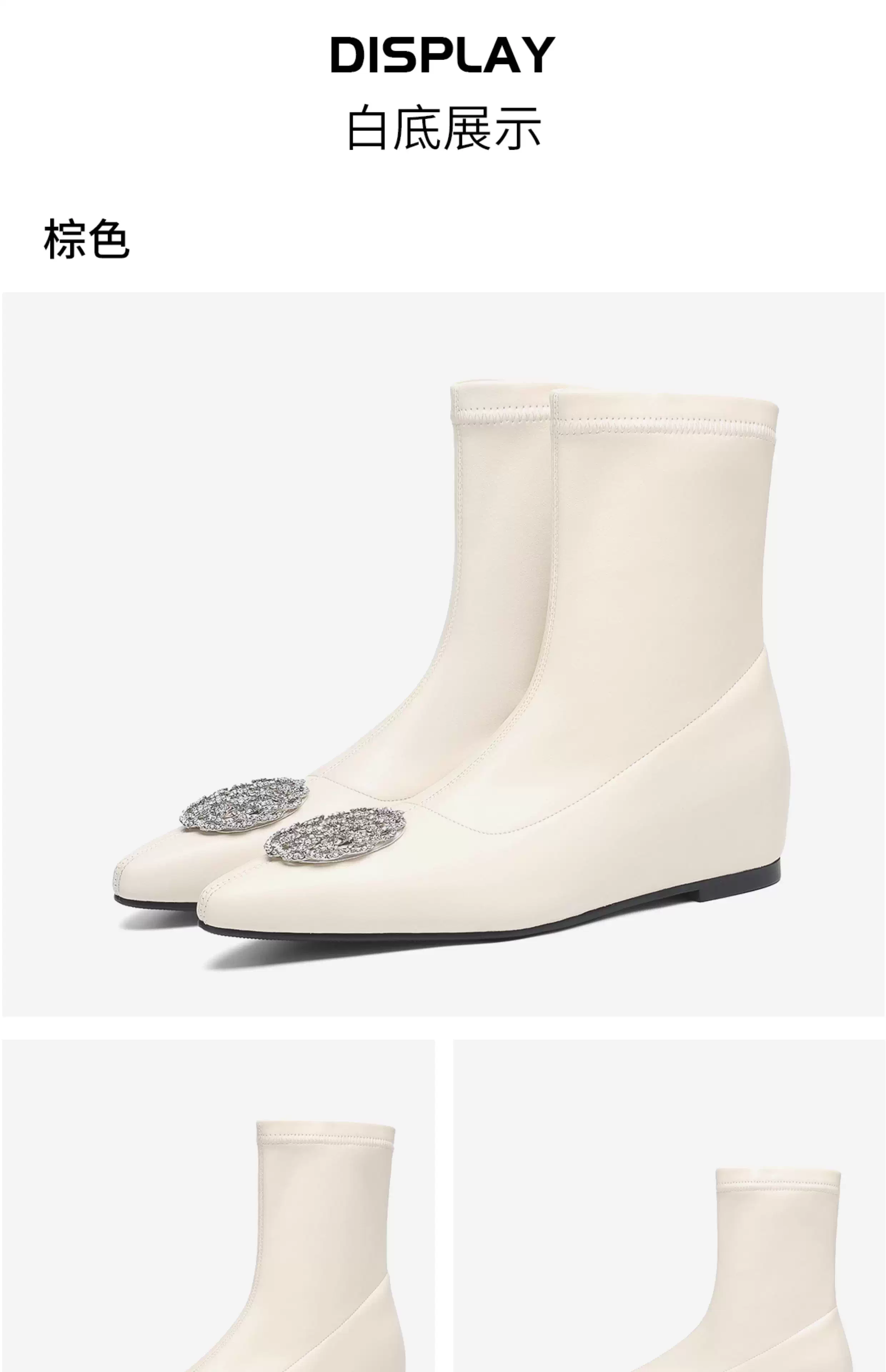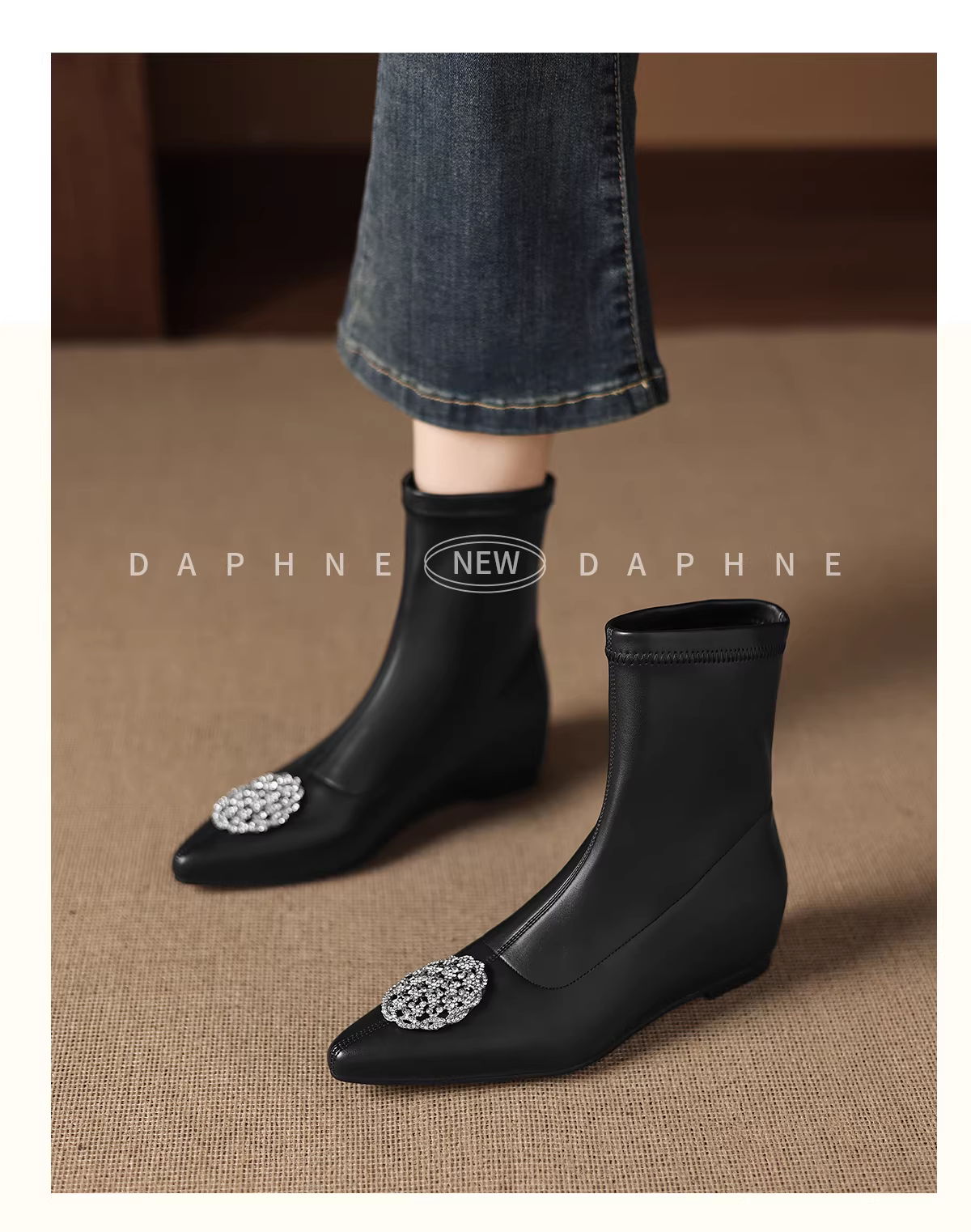 Giày bốt mũi nhọn ngắn Daphne dành cho nữ, kiểu dáng mùa đông mới 2025, thanh lịch, tăng chiều cao, ôm dáng, màu đen, kiểu Martin.