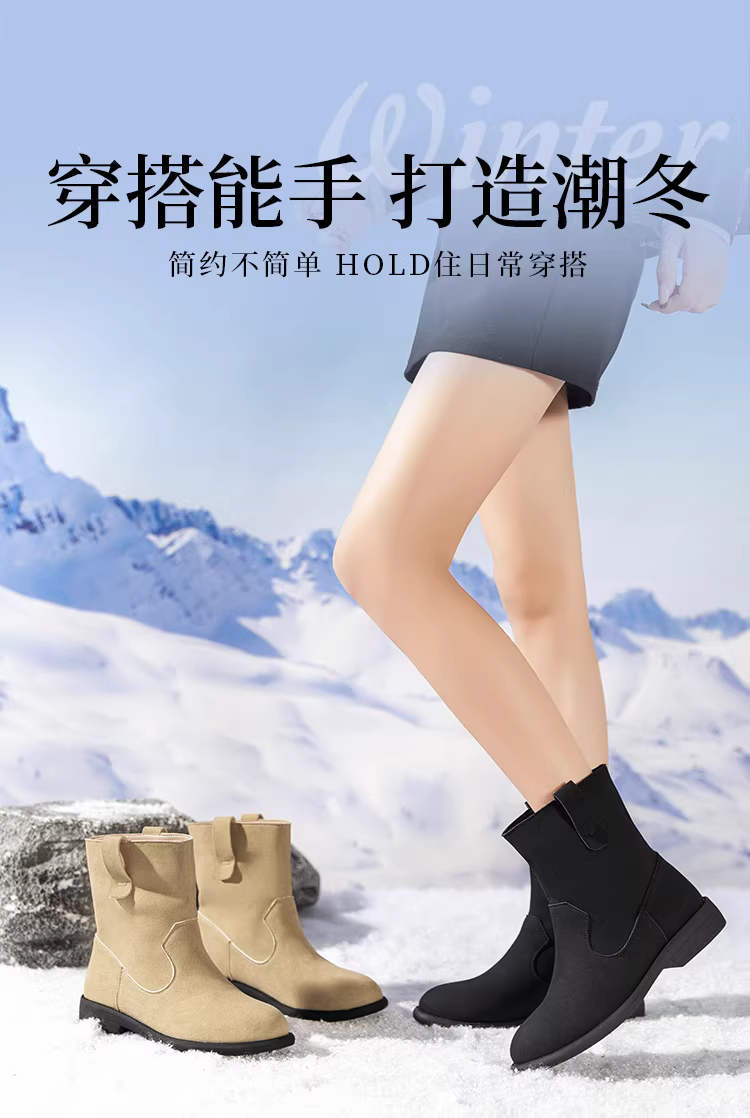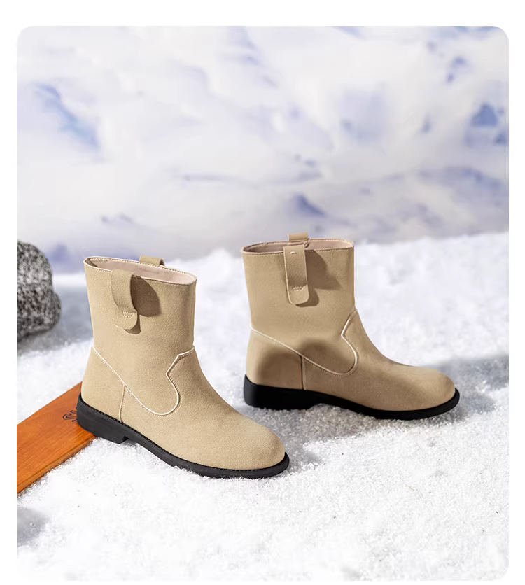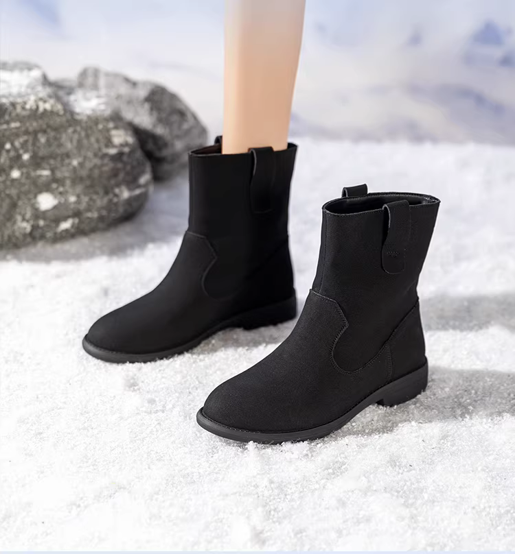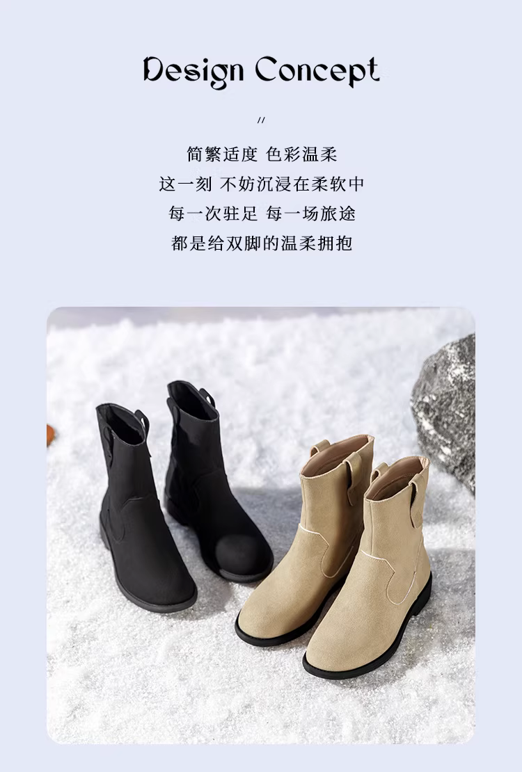 - Giày bốt ngắn da lộn Dadong dành cho nữ 2025, mẫu mới thu đông, kiểu cao bồi miền Tây, kiểu dáng ôm sát, kiểu Martin, kiểu bốt cổ ngắn