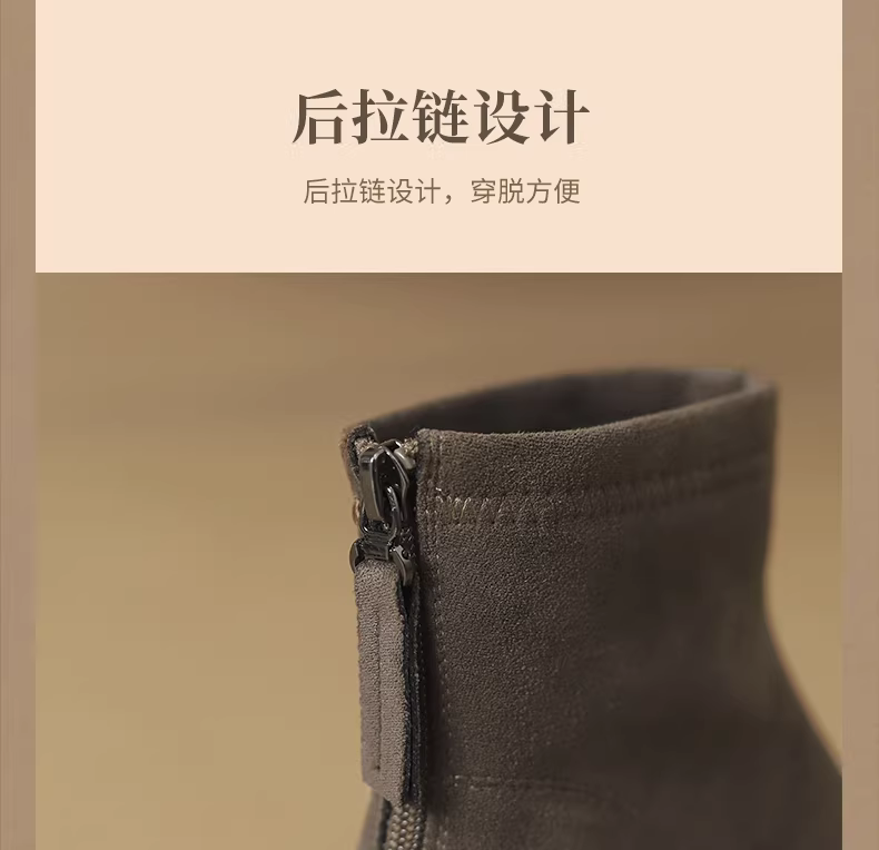 Giày bốt ngắn da lộn Daphne dành cho nữ 2025, mẫu mới mùa thu, kiểu Pháp, gót cao, ôm chân, gót thô, kiểu Martin, giày thời trang dành cho nữ
