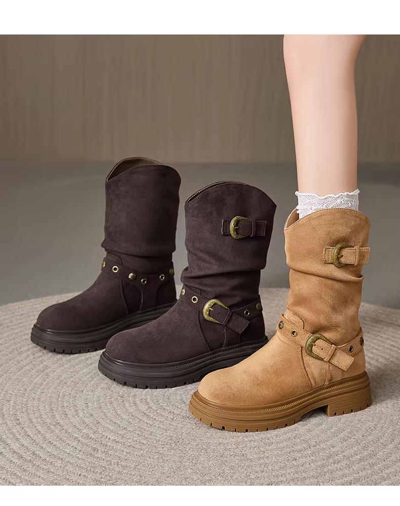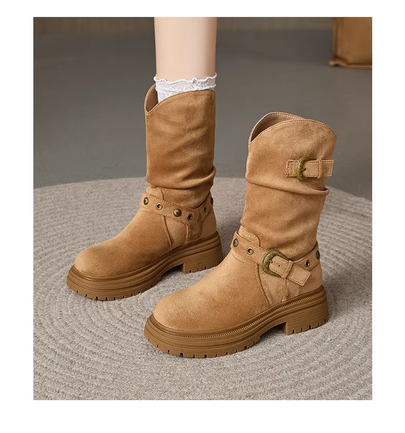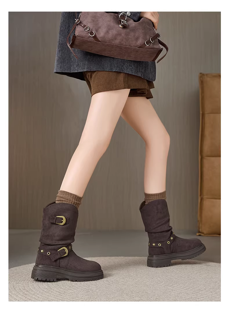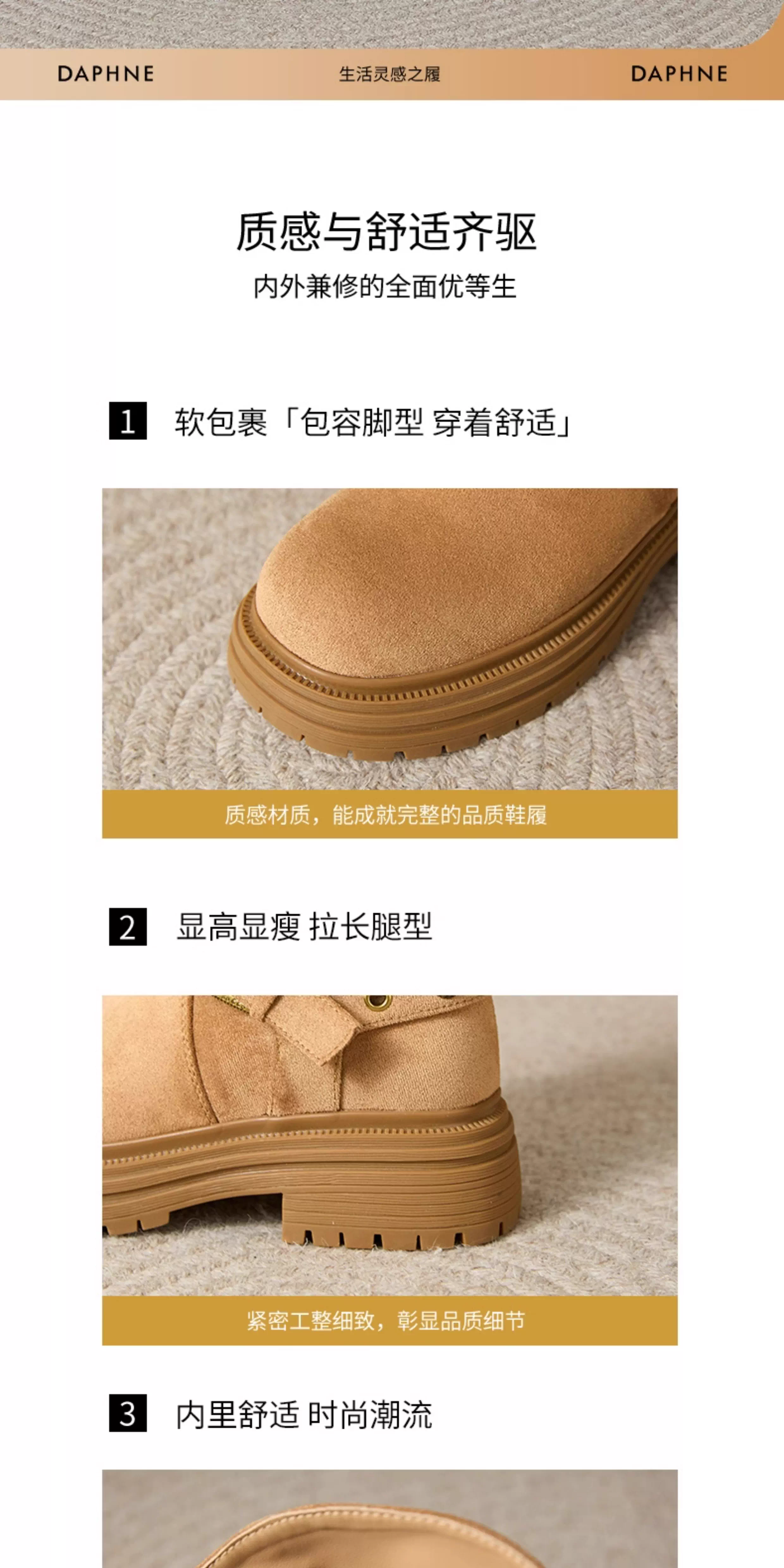 - Giày bốt ngắn da lộn Daphne dành cho nữ, kiểu mới thu đông 2025, phối cùng chân váy, đế dày tăng chiều cao, kiểu dáng cổ điển, thoải mái.