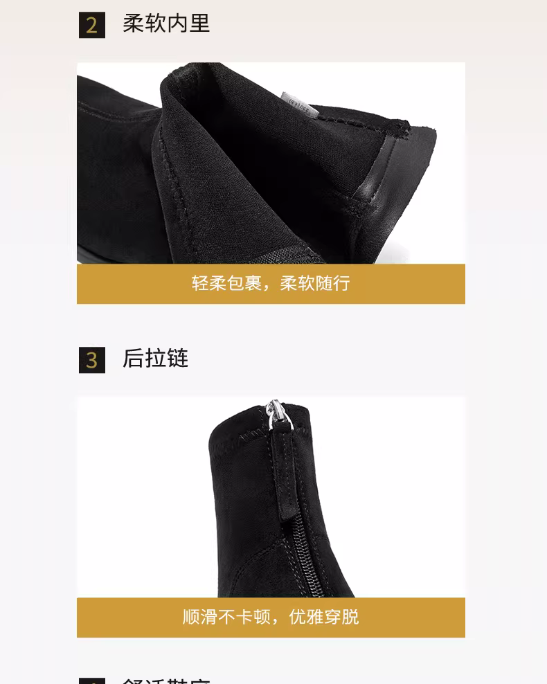 Giày bốt ngắn da lộn đen Dadong dành cho nữ, mùa thu đông 2025, kiểu dáng ôm sát, chất liệu thun, gót dày, kiểu Chelsea.