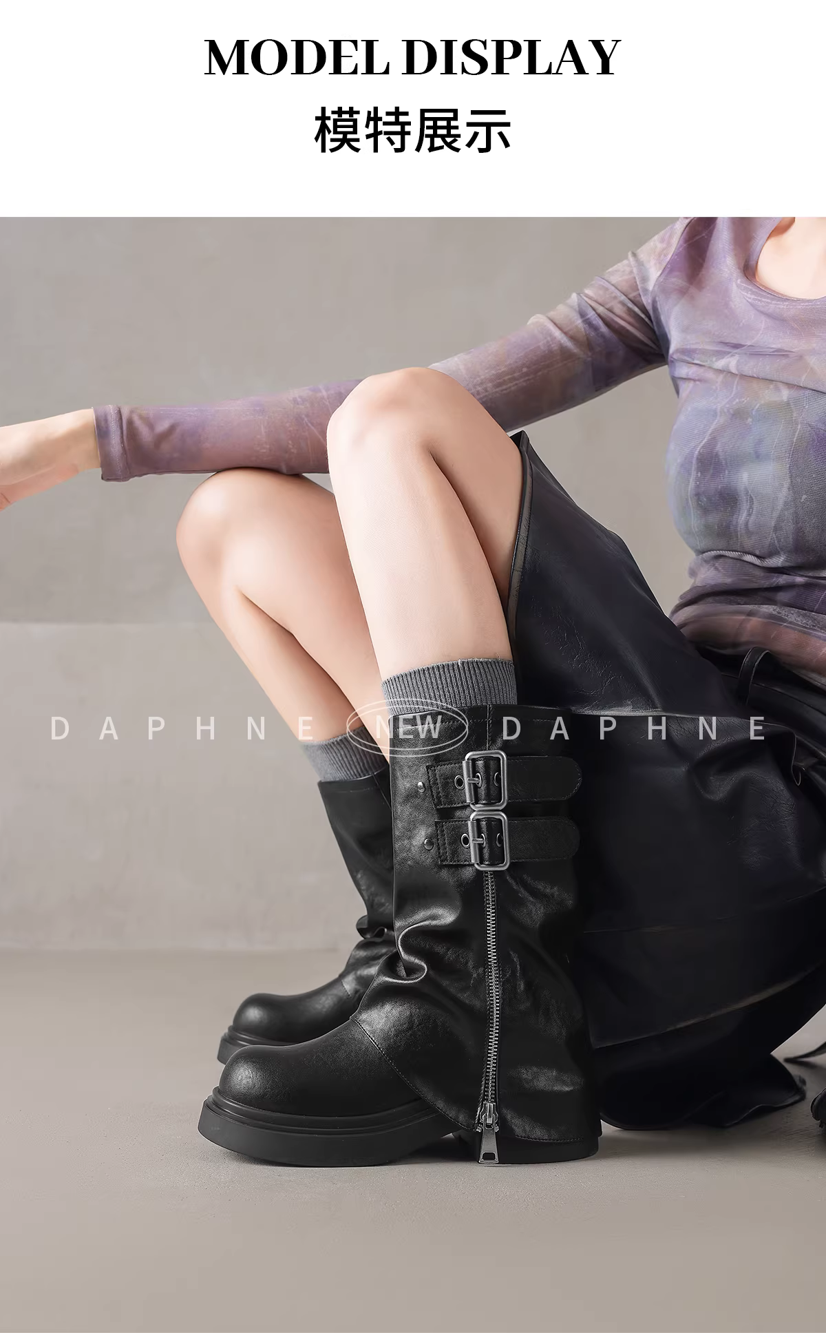 - Giày bốt ngắn Daphne dành cho nữ 2025, kiểu mới mùa đông, đế dày, kiểu Martin, kiểu cao bồi miền Tây, cao đến giữa bắp chân, kiểu đi cưỡi ngựa