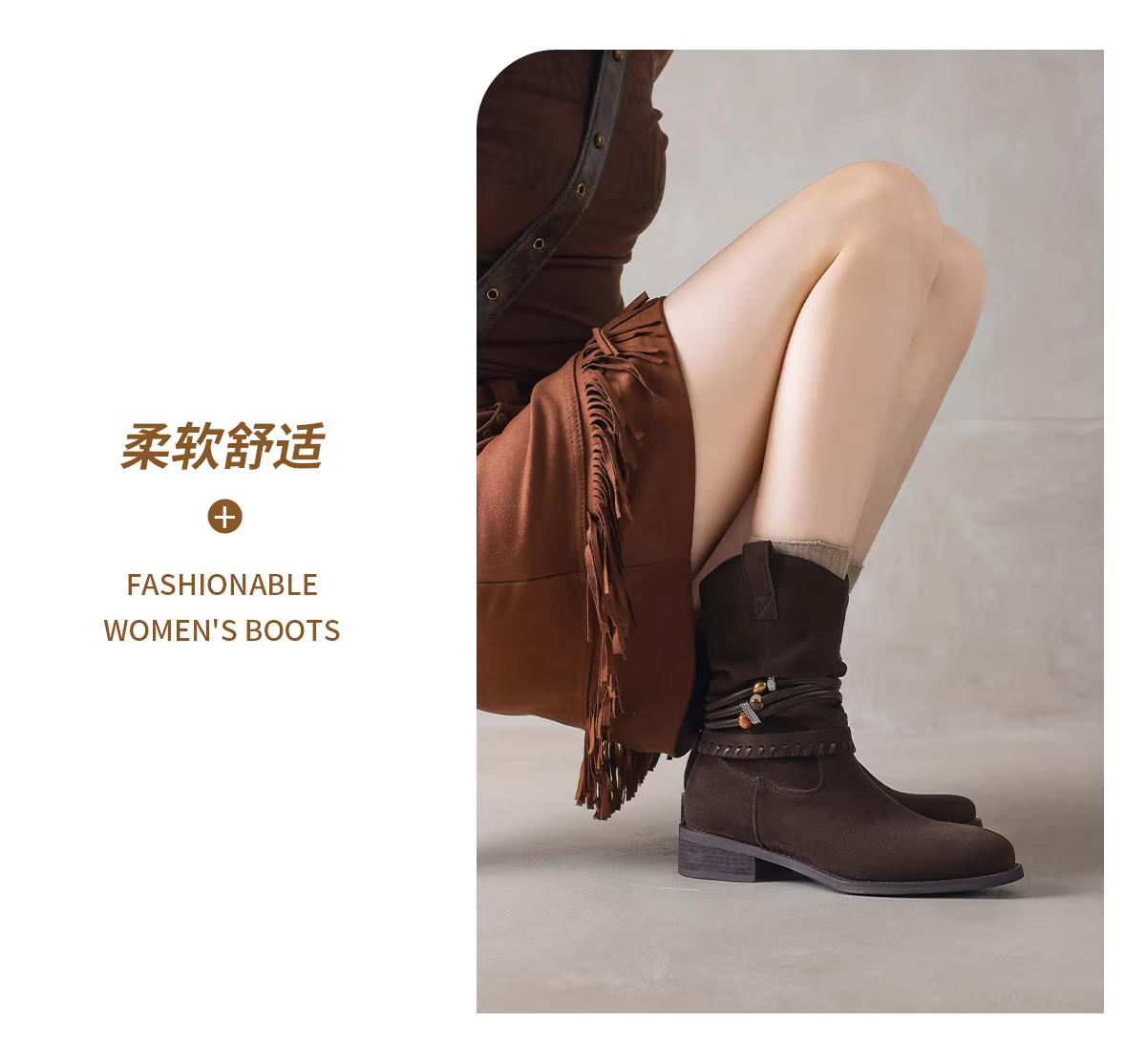 - Giày bốt ngắn Daphne dành cho nữ 2025, kiểu mới mùa đông, lót lông cừu, màu nâu Melard, kiểu dáng ôm sát, cao đến giữa bắp chân, chất liệu denim, kiểu dáng đi cưỡi ngựa