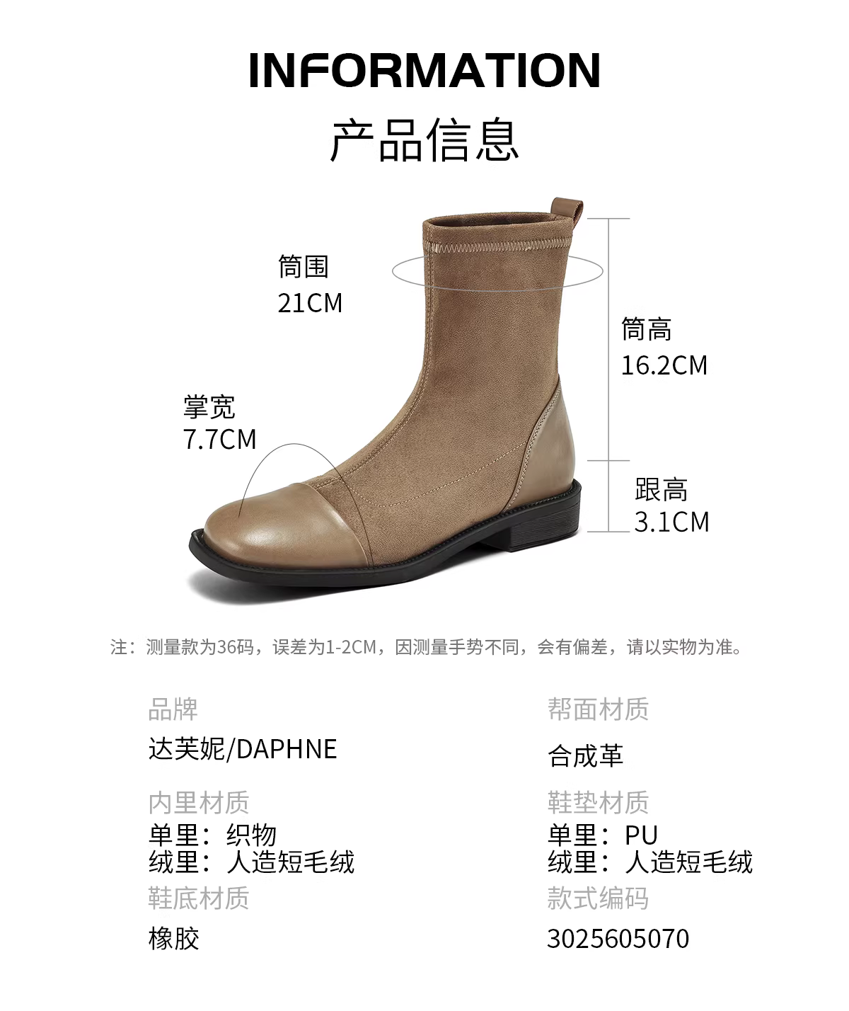 - Giày bốt ngắn Daphne dành cho nữ 2025, kiểu mới thu đông, chất liệu da lộn, kiểu dáng ôm sát, đế dày, tăng chiều cao, phong cách Anh quốc cổ điển, kiểu bốt đơn, bốt tất.