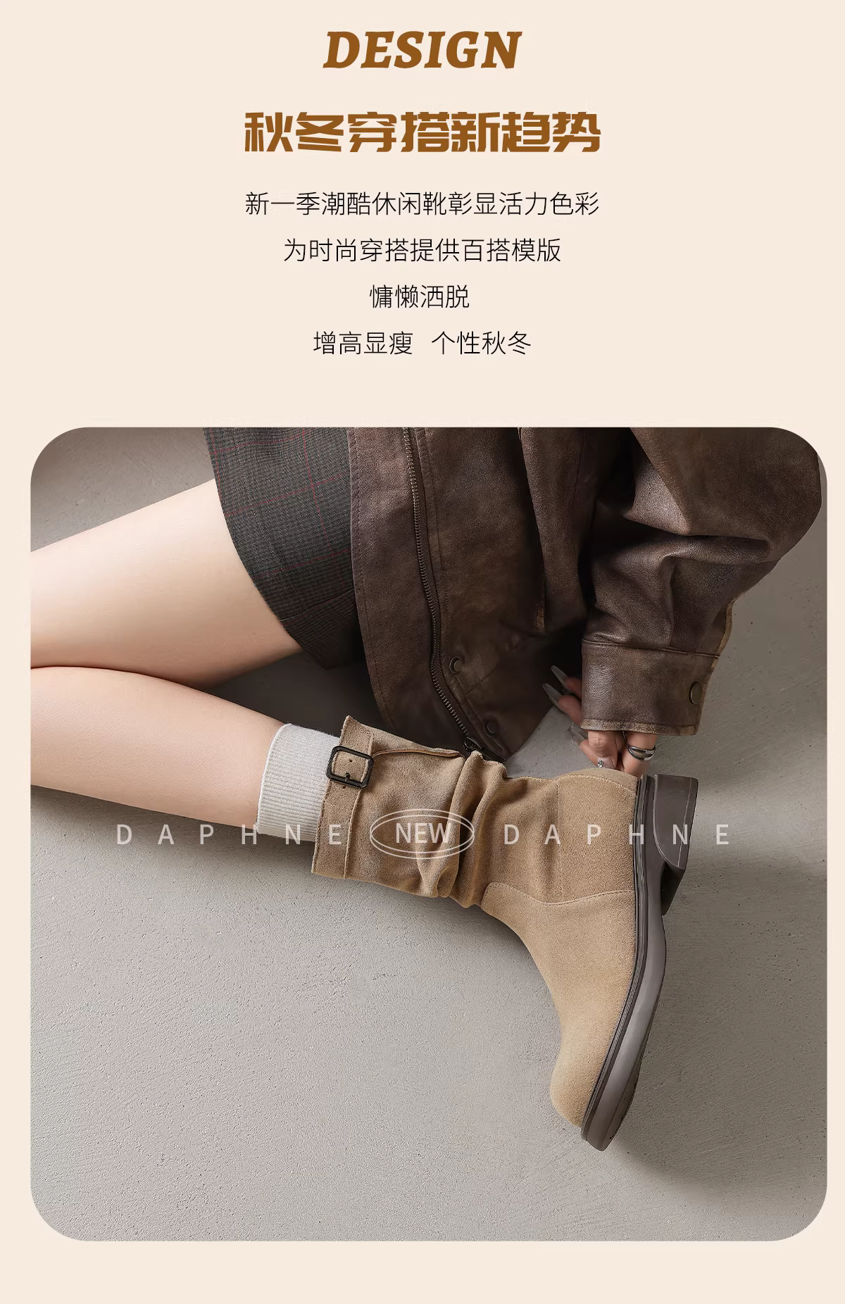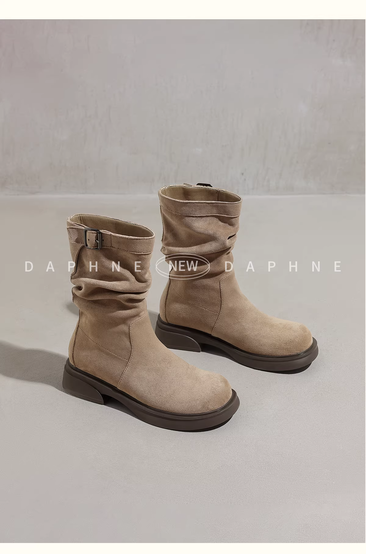 - Giày bốt ngắn Daphne dành cho nữ 2025, mẫu mới thu đông, bốt cao đến giữa bắp chân màu nâu, bốt kiểu Melard, bốt kiểu Martin