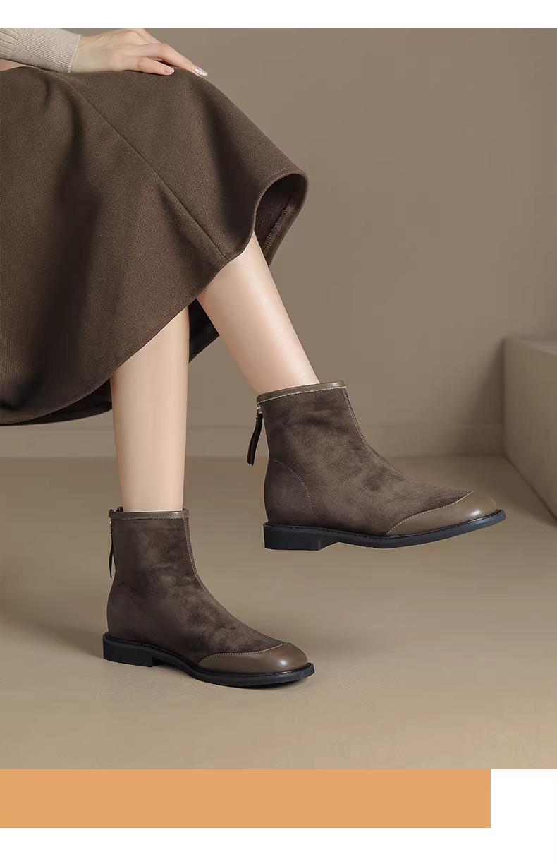 Giày bốt ngắn Daphne dành cho nữ 2025, mẫu mới thu đông, kiểu dáng thấp, ôm chân, giày bốt mùa đông, giày bốt kiểu tất, giày mẹ, giày bốt Martin lót lông