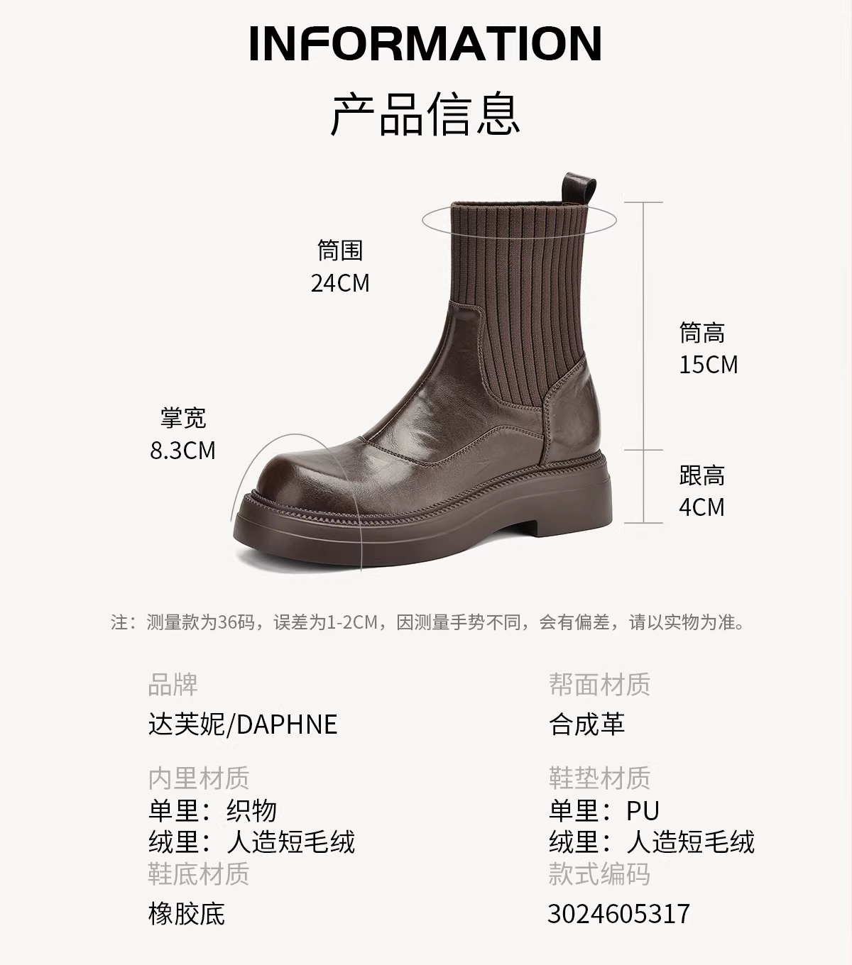 - Giày bốt ngắn Daphne dành cho nữ 2025 mới mùa đông đế dày kiểu tất Chelsea giày bốt nữ mùa thu giày nữ cổ ngắn giày bốt Martin
