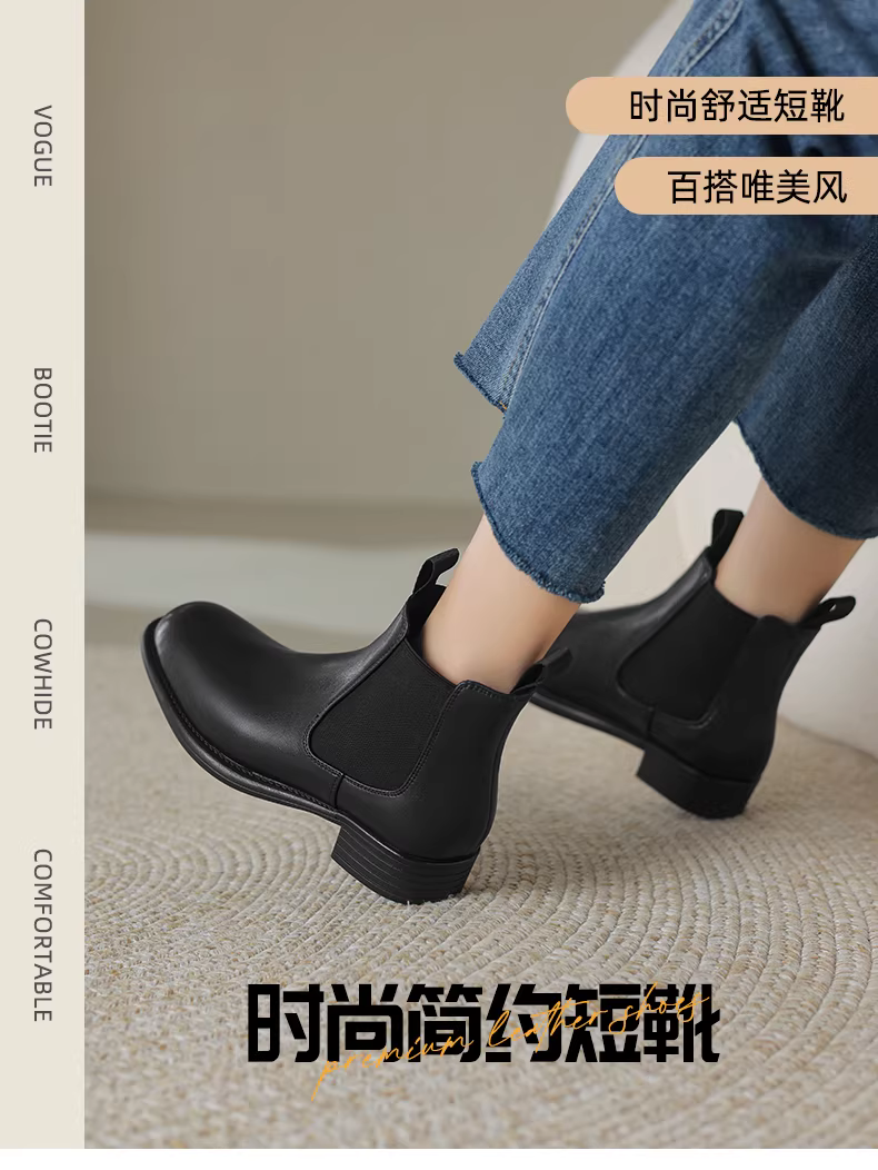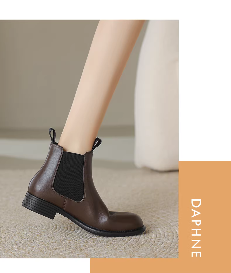 Giày bốt ngắn Daphne dành cho nữ kiểu mới 2025, lót lông cừu, da thật, mùa đông, giày bệt, kiểu Chelsea, kiểu Martin