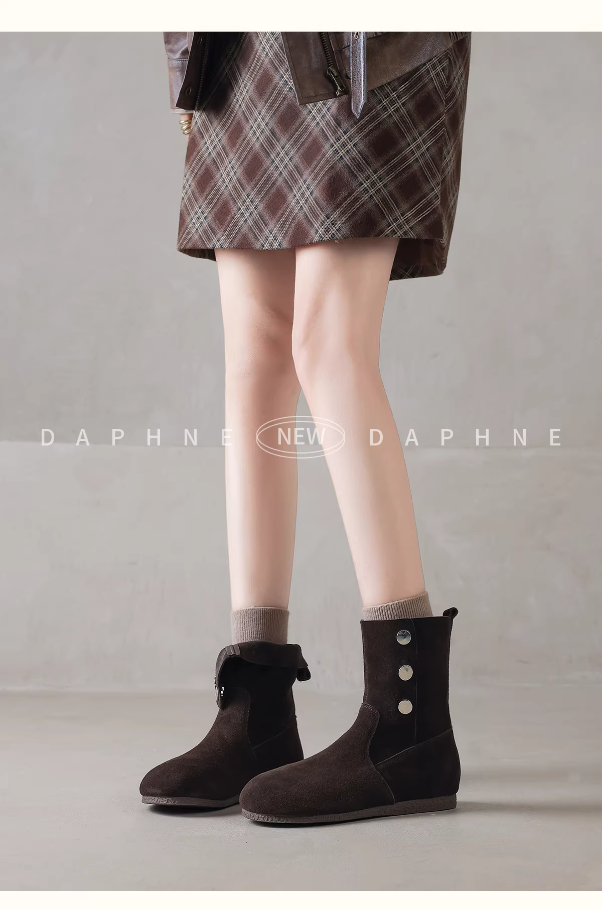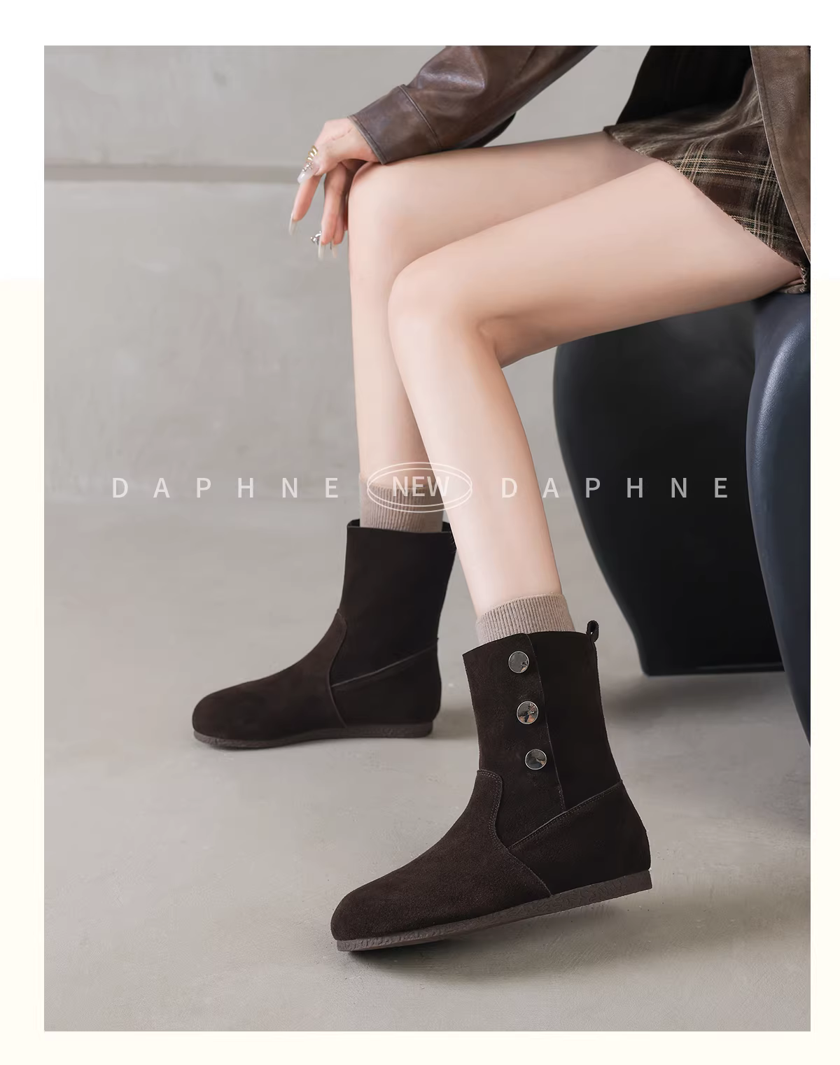 Giày bốt ngắn Daphne dành cho nữ, kiểu mới mùa đông 2025 lót lông cừu, kiểu Martin, giày đi xe, bốt đế bằng mỏng, giày Birkenstock.