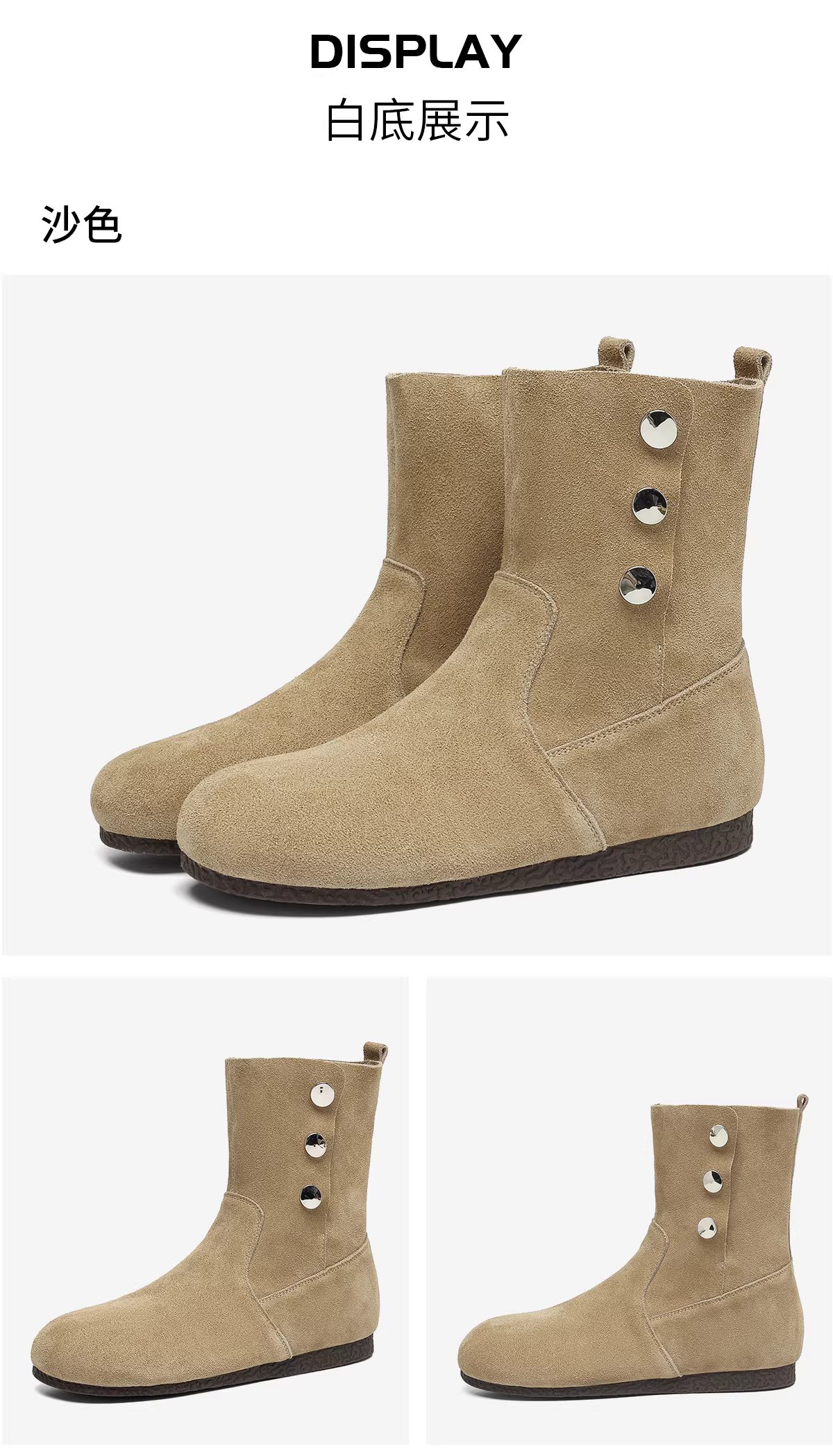 - Giày bốt ngắn Daphne dành cho nữ, kiểu mới mùa đông 2025 lót lông cừu, kiểu Martin, giày đi xe, bốt đế bằng mỏng, giày Birkenstock.