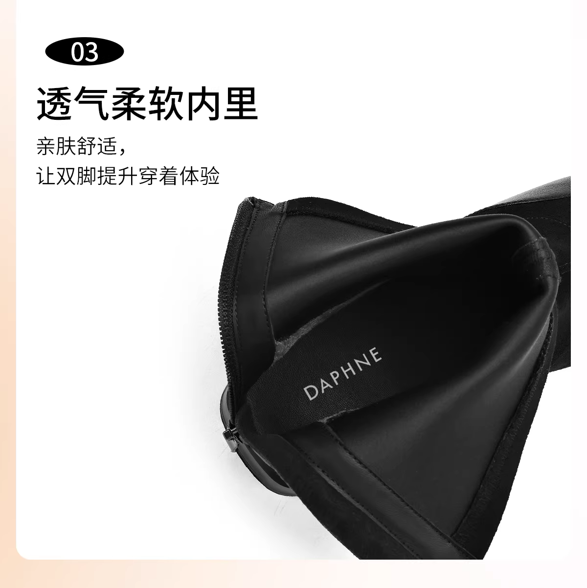 - Giày bốt ngắn Daphne dành cho nữ, kiểu mới thu đông 2025, bốt đế bằng mỏng, bốt nữ mũi vuông, gót thấp, lót lông cừu, kiểu vớ co giãn.