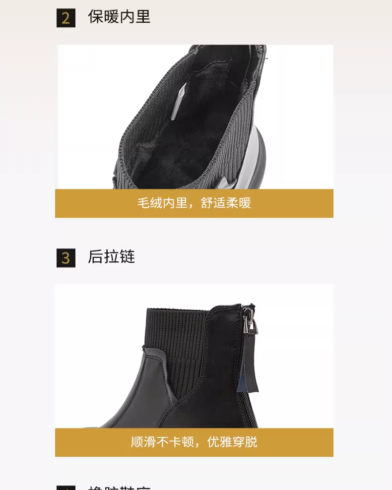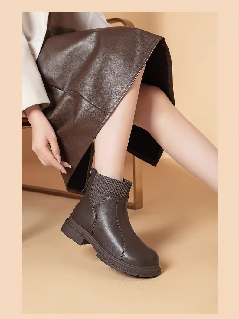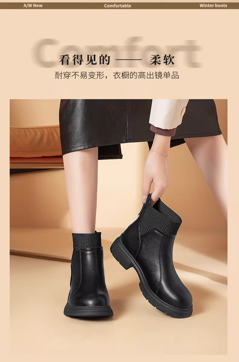 - Giày bốt ngắn đế dày lót lông cừu Dadong dành cho nữ 2025 giày nữ mùa thu đông mới giày bốt thon gọn co giãn đa năng giày bốt thời trang ấm áp