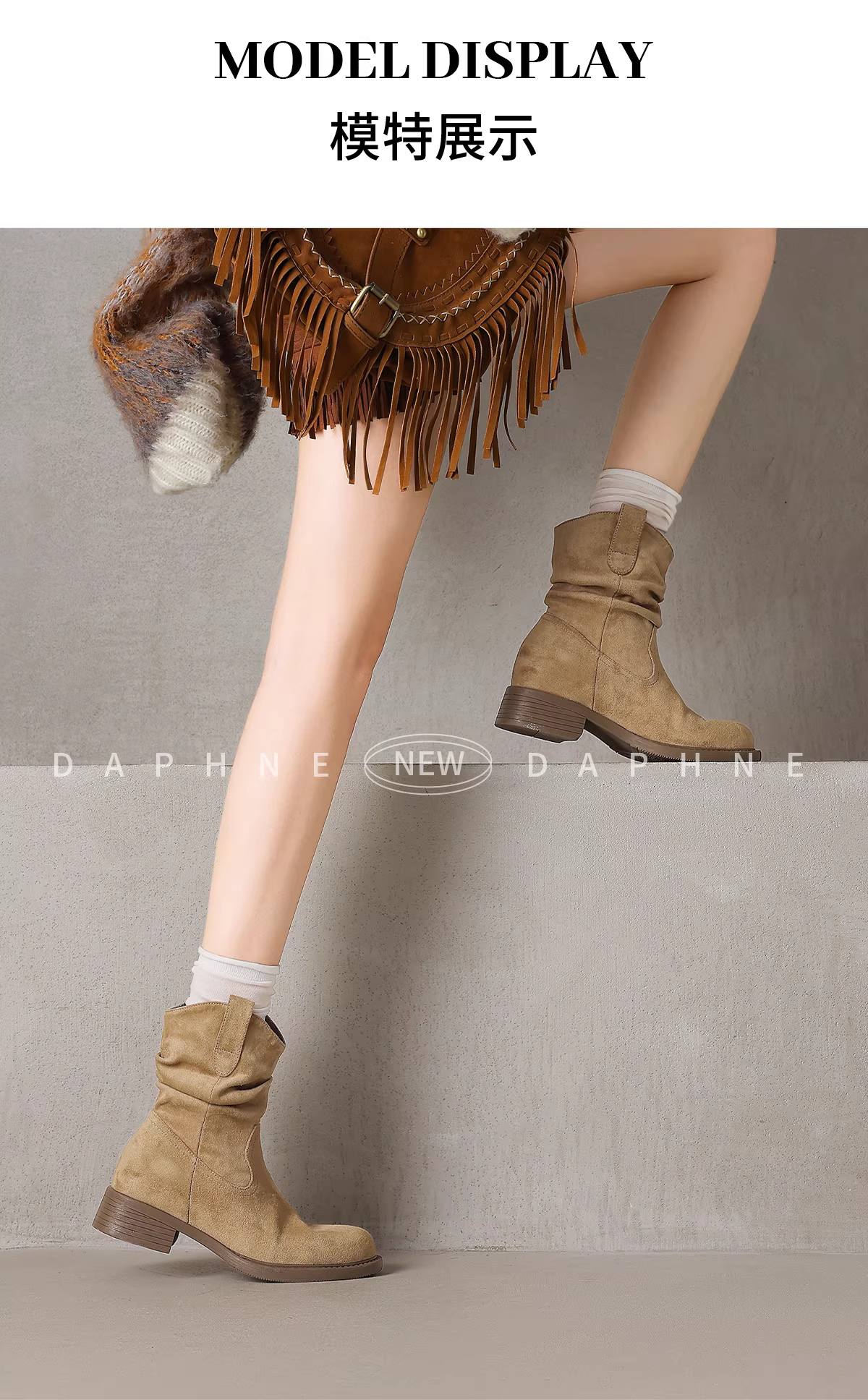 - Giày bốt ngắn đến giữa bắp chân Daphne Maillard dành cho nữ, mẫu mới thu đông 2025, kiểu cao bồi miền Tây, kiểu dáng lười, kiểu Martin, giày đơn.